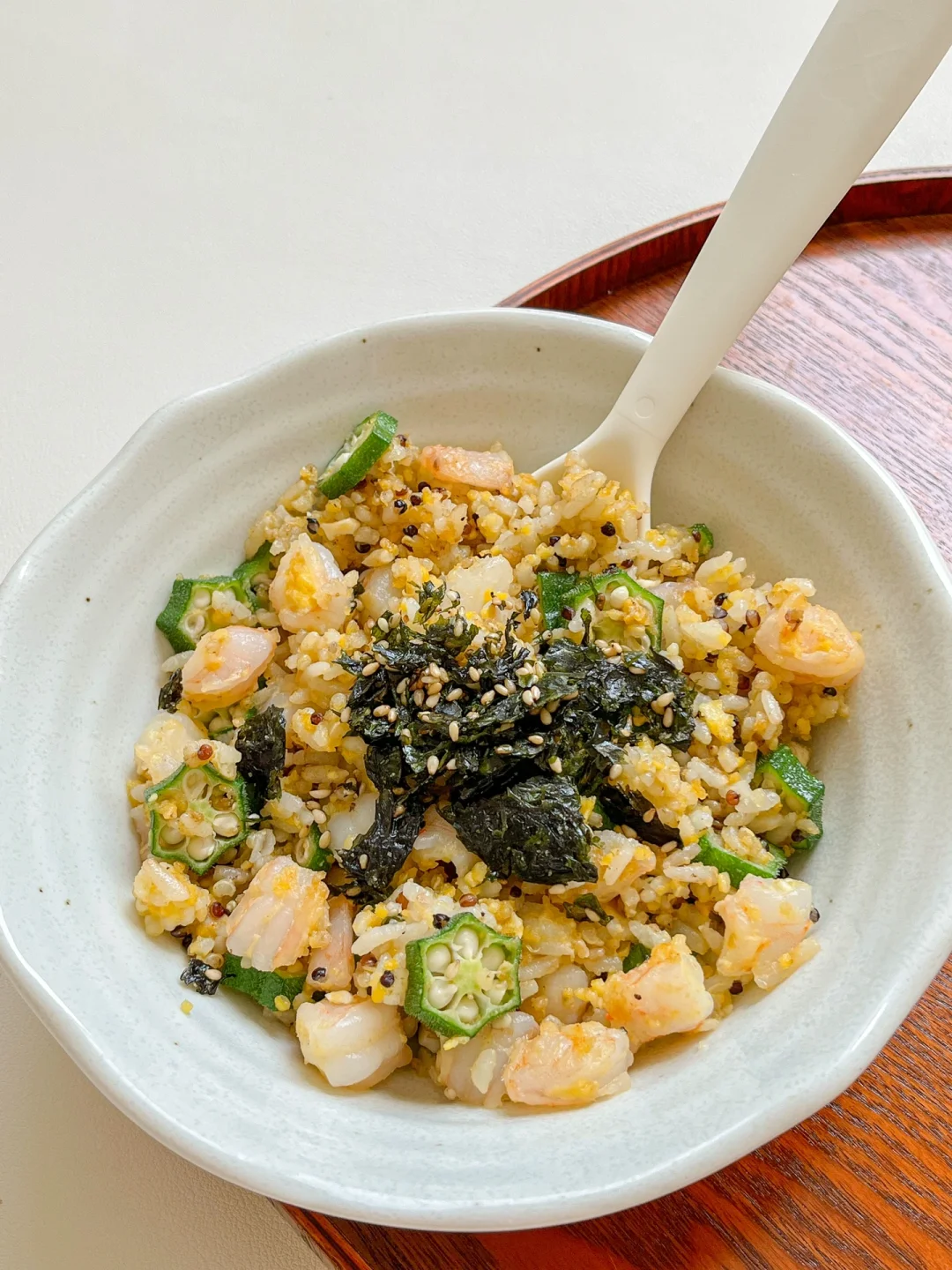 🟢咸蛋黄秋葵虾仁炒饭