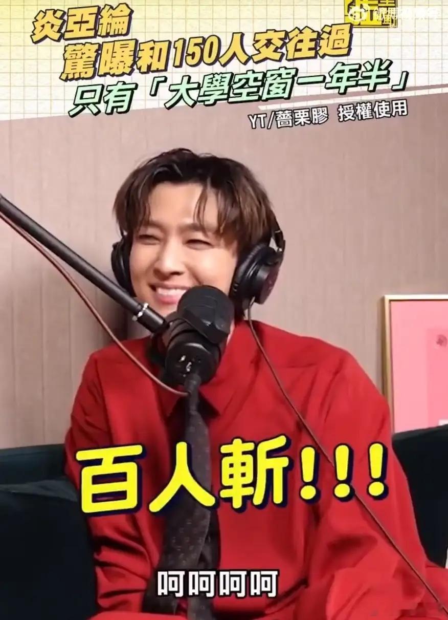 炎亚纶现在有点子离谱!上访谈节目说自己和150人交往过,期间还和阿本谈了9年,这也太离谱了吧,就算一个月换一个,也需要13年的时间,他现在自己爆出来,相当于是亲自锤自己当年偶像失格,飞轮海总共四个人,吴尊英年早婚,炎亚纶出柜且约P,汪东城长期被同性骚扰,辰亦儒和曾之乔偷偷谈了很多年最后结婚,放到现在都会被粉丝锤死的程度。