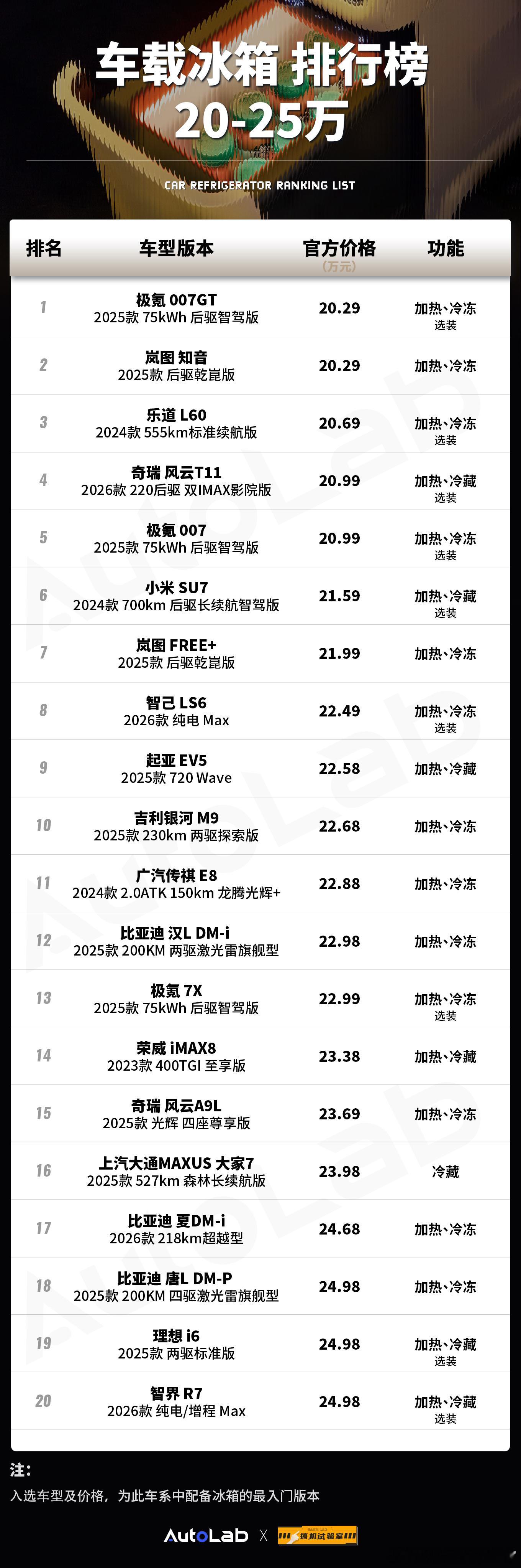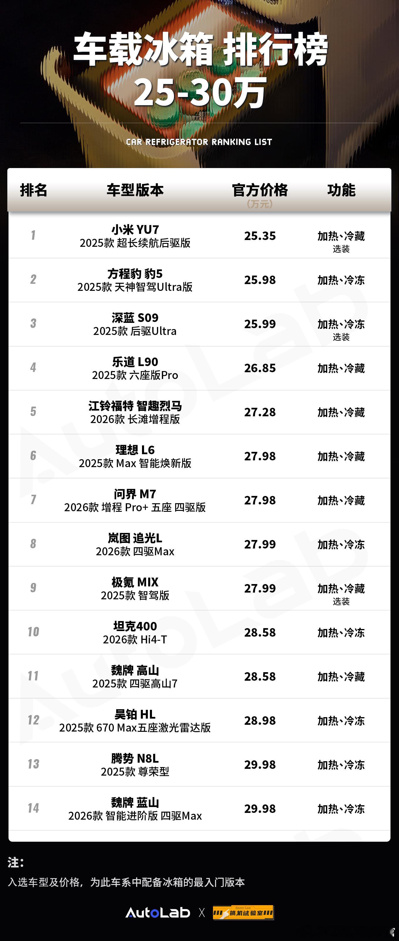 替大家整理了下,目前30万以内配备了车载冰箱的车型20万左右配备冰箱的车是越来越多了,大家猜猜明年哪家车企会第一个把冰箱带入10万元以内的新车