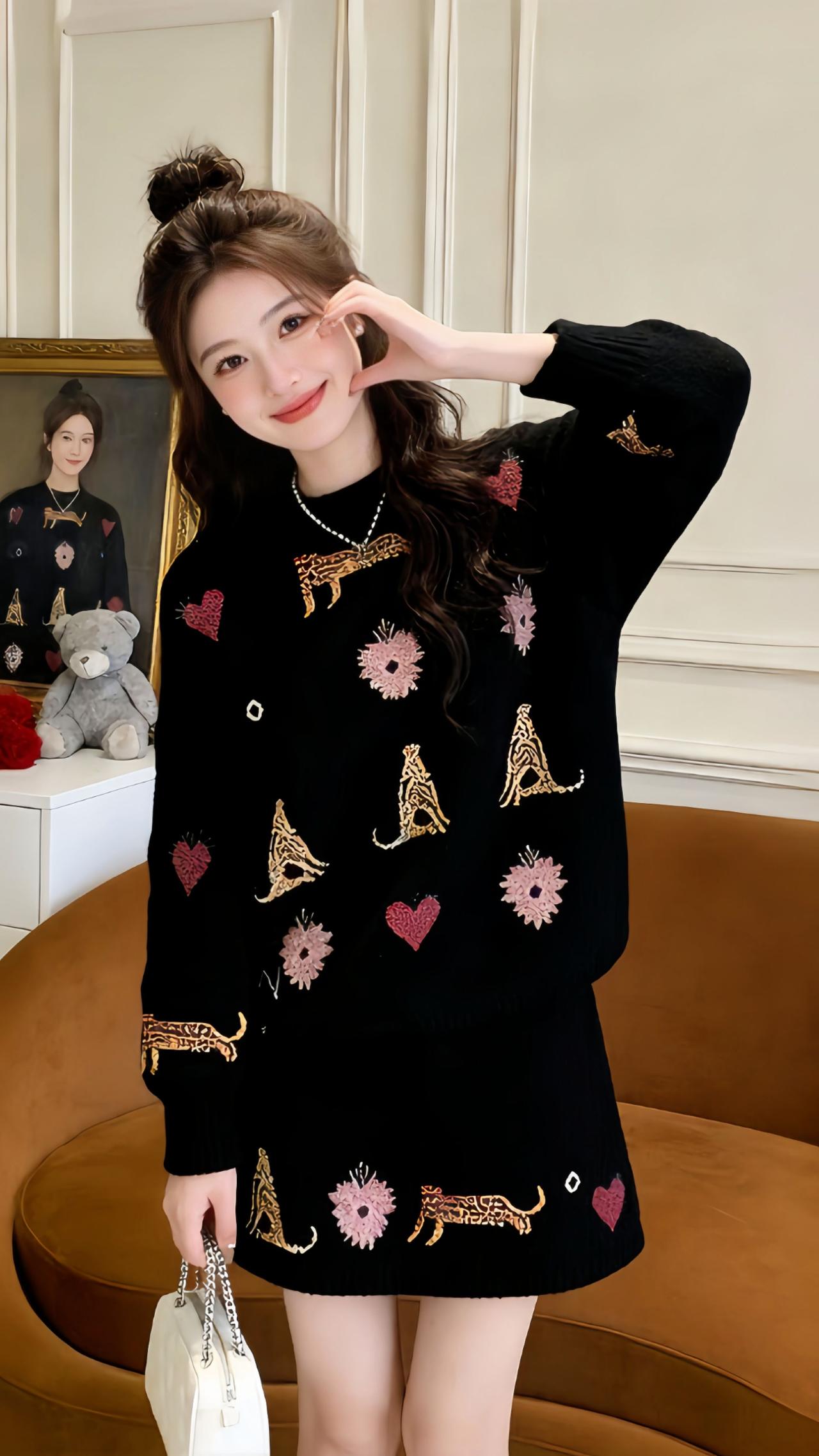 《Danny的新年氛围感套装心动纪事》 落地窗旁的冬日雪景里,Danny身着新年款黑金刺绣两件套半身裙美翻了!半扎丸子头配珍珠项链,不管是对着模特架分享穿搭,还是坐在皮沙发自拍,精致的刺绣花纹都让甜酷年味拉满,每一帧都像新年画报~ 软乎乎的针织面料亲肤又显瘦,半身裙版型还超藏肉,过年走亲访友、闺蜜聚会穿这套,轻松穿出新年专属的亮眼氛围感,时髦精的新年战袍就选它啦~ 小个子女生的冬季逆袭穿搭 时髦少女感的冬日套装 用暖系氛围感打开冬日 冬天就是要穿得暖呼呼 谁穿谁好看 @抖加🔥上热门🔥dou+🔥热点宝 @DOU+上热门 @图文带货帮扶中心