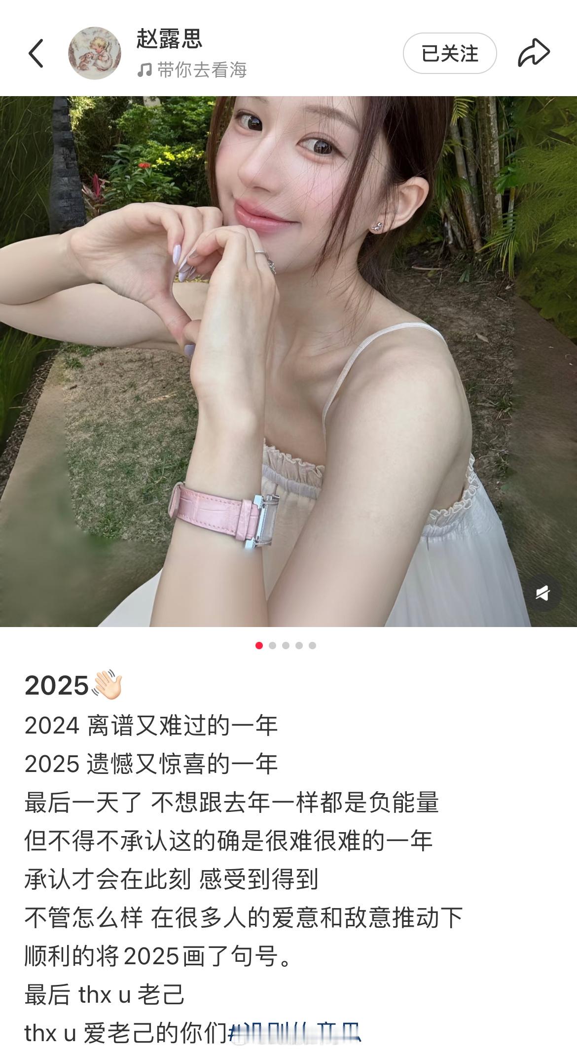 赵露思2025年终发文:2024 离谱又难过的一年2025 遗憾又惊喜的一年最后
