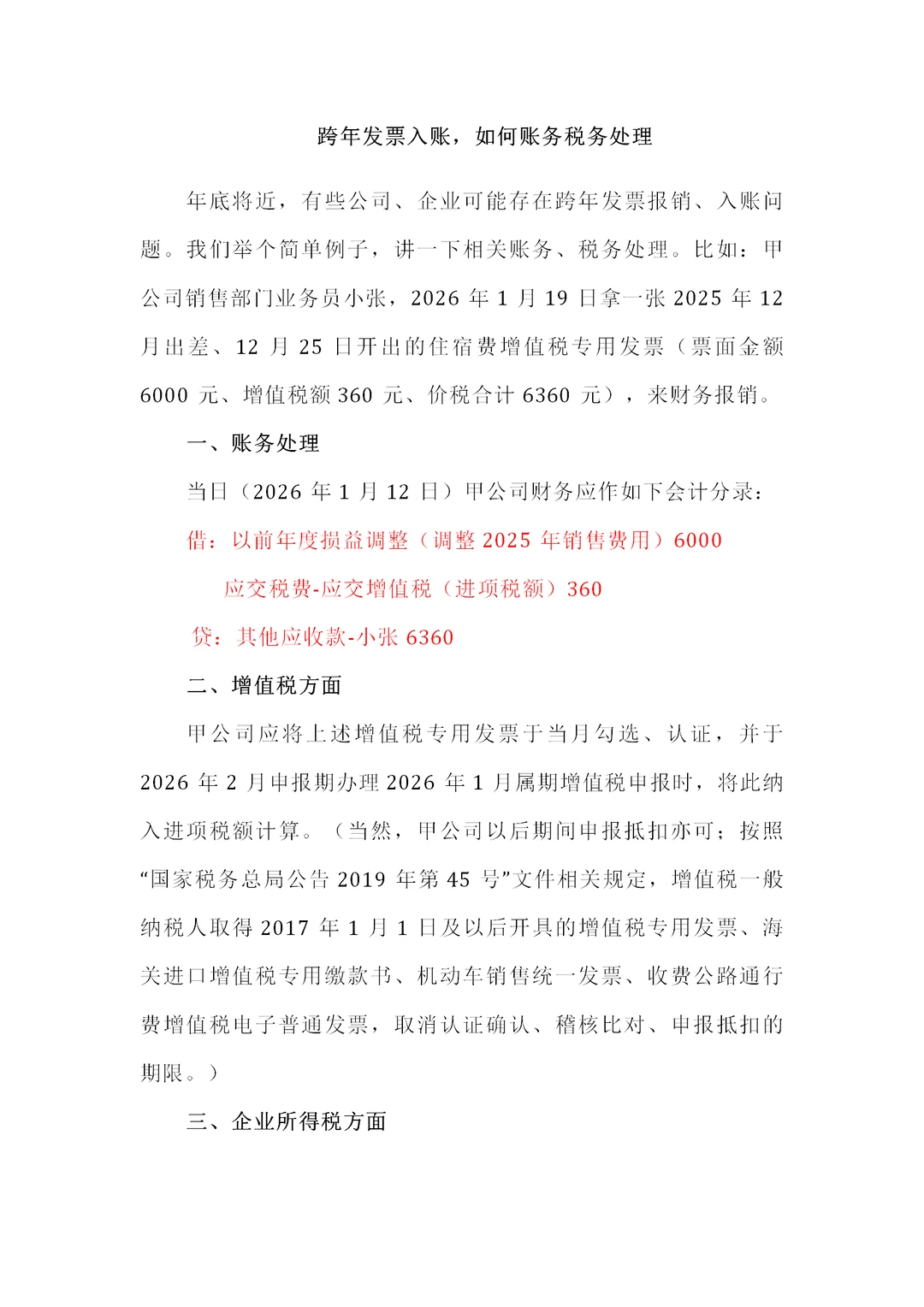 跨年发票入账如何税务处理