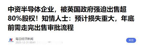 又一中企被欧洲强迫出售股权,或面临4亿美元亏损 据多家媒体报道,明年1月1日起,英国政府将启动一项强制股份出售计划,强制要求中国半导体领域的知名投资机构“建广资产”,出售其持有的英国USB桥接芯片设计公司FTDI的80.2%的股权。   这已经是近年来英国第二次针对中资半导体企业,发起这种强制剥离股权的命令,背后能明显看出全球半导体产业链分裂的严峻现状。   这事得从2021年的一笔战略收购说起。当年12月,建广资产联合其他相关机构,通过在英国设立的全资孙公司FTDIHL,花了4.14亿美元,买下了FTDI 80.2%的股权。   其中包括3.64亿美元的自有资金,还有5000万美元的境外银行并购贷款。这笔交易在当时,被看作是中资布局高端模拟芯片领域的重要一步。建广资产之所以看重FTDI,是因为这家1992年在英国格拉斯哥成立的企业,是全球USB桥接芯片领域的龙头。   它专门做高速、超高速USB系列芯片的设计研发,产品定制性强,毛利率能超过70%,下游客户涵盖消费电子、工业设备、医疗仪器、汽车电子等关键领域,在全球市场里和芯科、微芯、德州仪器等巨头并列,占据着不小的市场份额。   本来以为这是一次成功的战略布局,没想到还不到三年,这笔投资就遭遇了颠覆性的转折。英国政府把2021年12月FTDIHL持股比例提升到75%以上、拿到FTDI控制权这件事,当作“触发事件”,依据2022年1月生效的《2021年国家安全与投资法》,启动了长达两年多的回溯审查。   2024年11月初,英国政府正式发布行政命令,以“英国开发的半导体技术和知识产权可能被违规使用”“FTDI所有权可能威胁关键基础设施安全”为理由,要求FTDIHL必须在规定时间内,卖掉手里全部的FTDI股权,还限定30天内提交处置计划。   面对这种强制命令,中资方没有坐以待毙。2024年12月,他们提起了司法复核,还申请了临时救济,想暂停这项命令的执行,但英国高等法院在2025年2月驳回了上诉,彻底为强制出售程序扫清了法律障碍。   截至2025年12月底,接近建广资产的人士透露,要是不能在年底前走完出售审批流程,英国政府就会自行处置FTDI股权。   而且在政府的强制压力下,出售时间特别仓促,根本没有充分谈判的空间,股权售价大概率会远低于企业真实价值,建广资产和相关股东都会面临重大损失。结合当初4.14亿美元的收购成本,这次强制出售的预估亏损差不多接近4亿美元。   值得注意的是,这不是英国第一次以“国家安全”为借口,干预中资半导体投资。早在2022年5月,英国就用同一部法律,强制要求闻泰科技旗下的安世半导体,卖掉收购的英国晶圆厂Newport Wafer Fab(NWF)股权。   当时安世半导体在2021年7月收购了濒临破产的NWF,经过一年运营成功盘活了这家企业,却突然被英国政府以“危害国家安全”为由要求剥离股权。最后NWF以1.77亿美元的低价卖给了美国企业,中资方前期的投入和运营成果全都打了水漂。   这足以看出英国对中资半导体投资的针对性限制,这种限制逻辑其实很迷惑。FTDI本身没有任何军工背景,核心业务全都是民事领域,英国政府所谓的“安全威胁”,从头到尾都没拿出具体证据,本质上就是把“国家安全”的概念泛化、当成工具,借着法律的名义遏制中资在半导体领域的布局。   在中美科技战持续升级的背景下,英国作为美国的核心盟国,正慢慢把半导体领域打造成中资的“投资禁区”。这种做法不仅让中企遭受直接的经济损失,更严重的是破坏了跨国资本流动和技术合作的信任基础。   一家专注做民用芯片的企业,就因为股东是中资,就被贴上“安全威胁”的标签,这意味着任何中资参与的半导体投资,都可能面临不确定的审查,全球供应链的稳定性和效率也会因此被削弱。   要知道,目前USB桥接芯片市场被国外厂商垄断,FTDI的技术积累对全球相关产业的发展很重要,强制变更股权可能会导致技术研发中断、客户资源流失,最终影响到全球产业链上下游企业的利益。   从荷兰阻止中资收购恩智浦旗下的安世半导体,到英国多次强制剥离中资股权,背后都是技术霸权思维下的贸易保护主义在作祟。   这些国家无视市场规律和企业合法权益,以“国家安全”为借口搭建投资壁垒,本质上是为了维护自己在半导体领域的技术垄断地位,遏制中国半导体产业的发展。   从全球范围来看,半导体产业的发展需要开放合作的环境,把投资问题政治化、搞阵营对立,最后只会导致“双输”的局面。