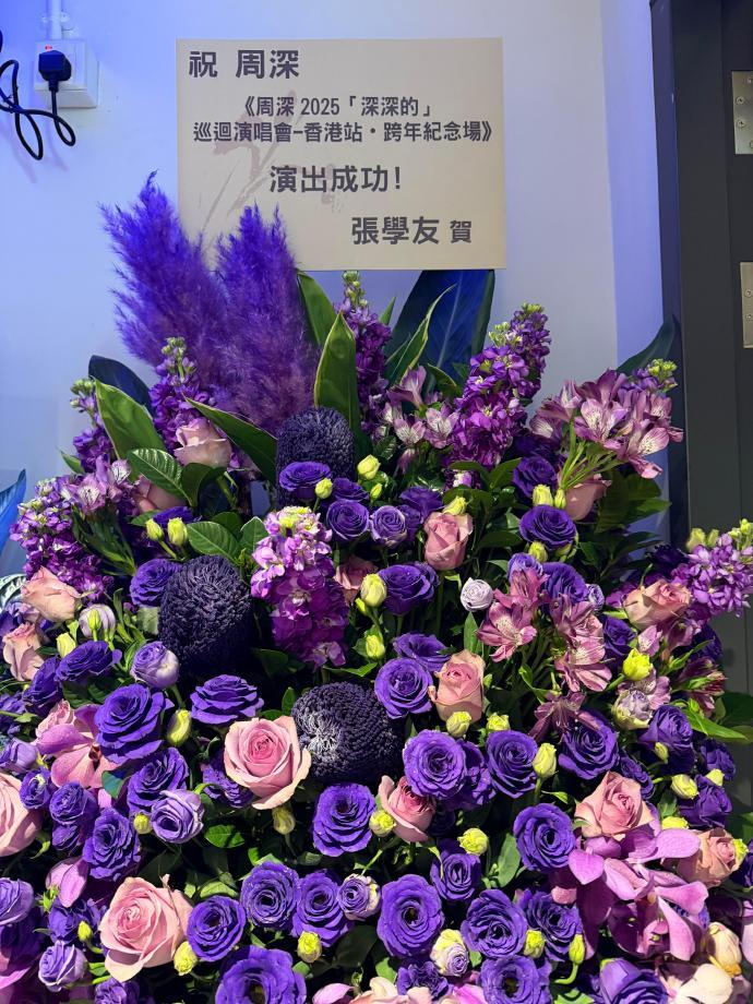 周深香港演唱会花篮周深香港演唱会排面连续六年坐镇江苏卫视跨年,周深的全开麦舞台从