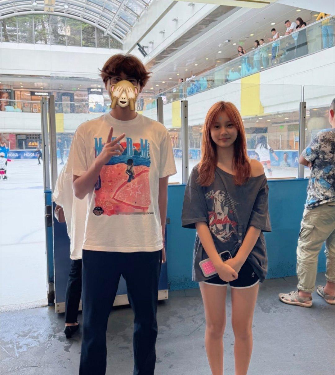 李湘发女儿王诗龄与张艺兴照片,配文:和哥哥一起跨年!王诗龄身穿金色短裙,手拿