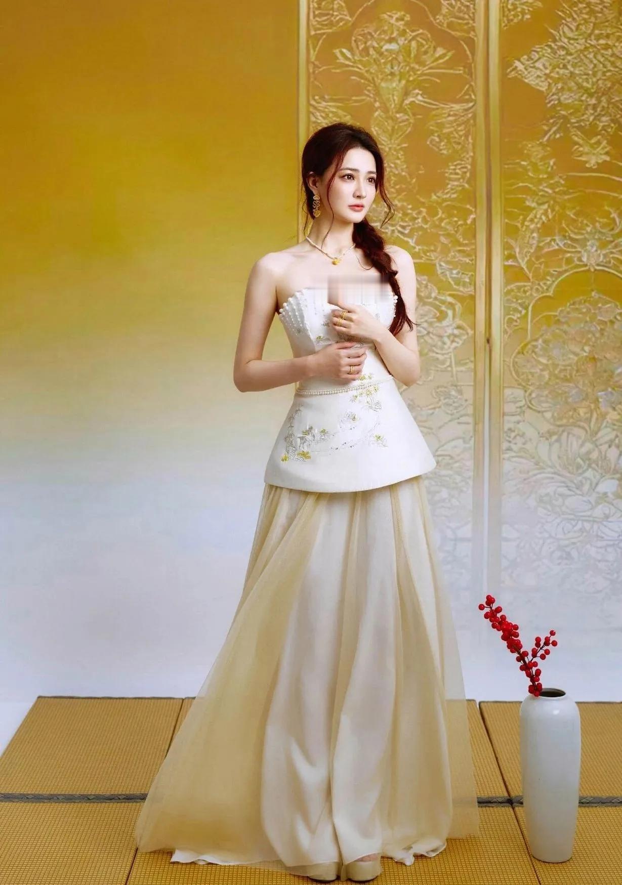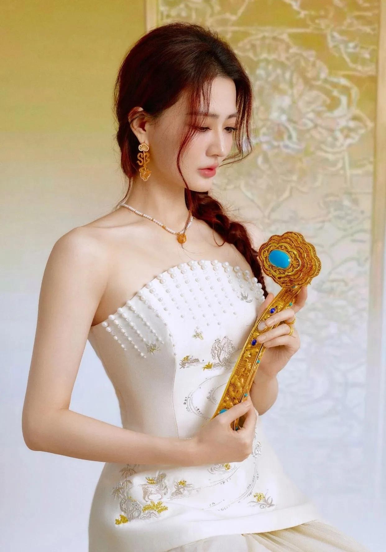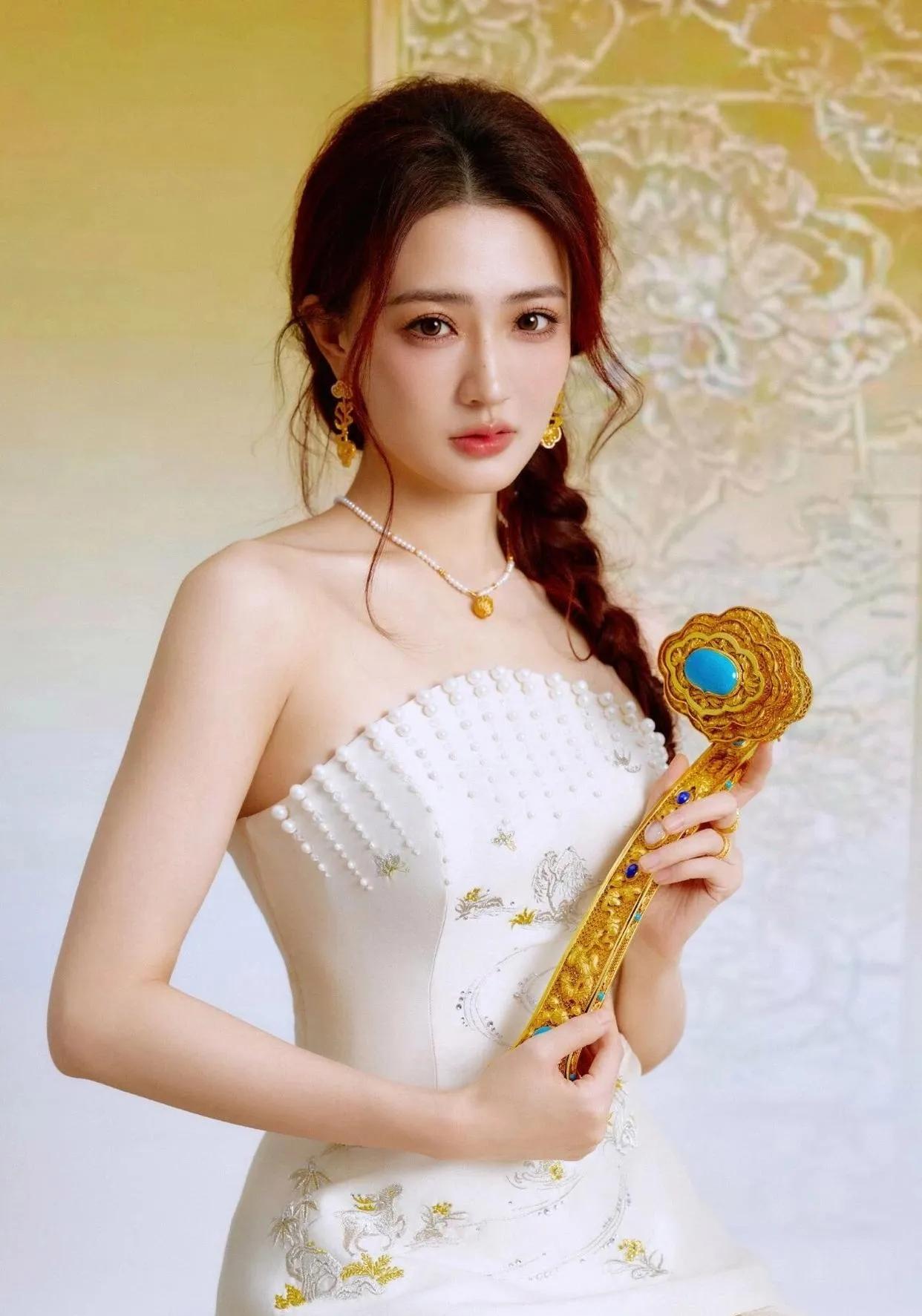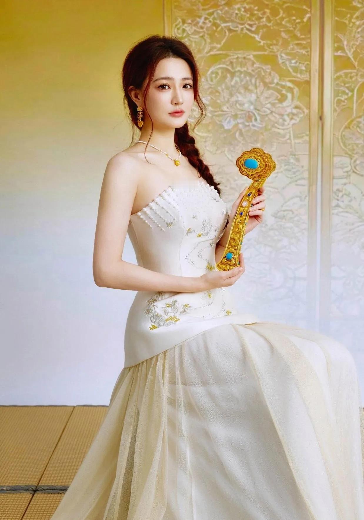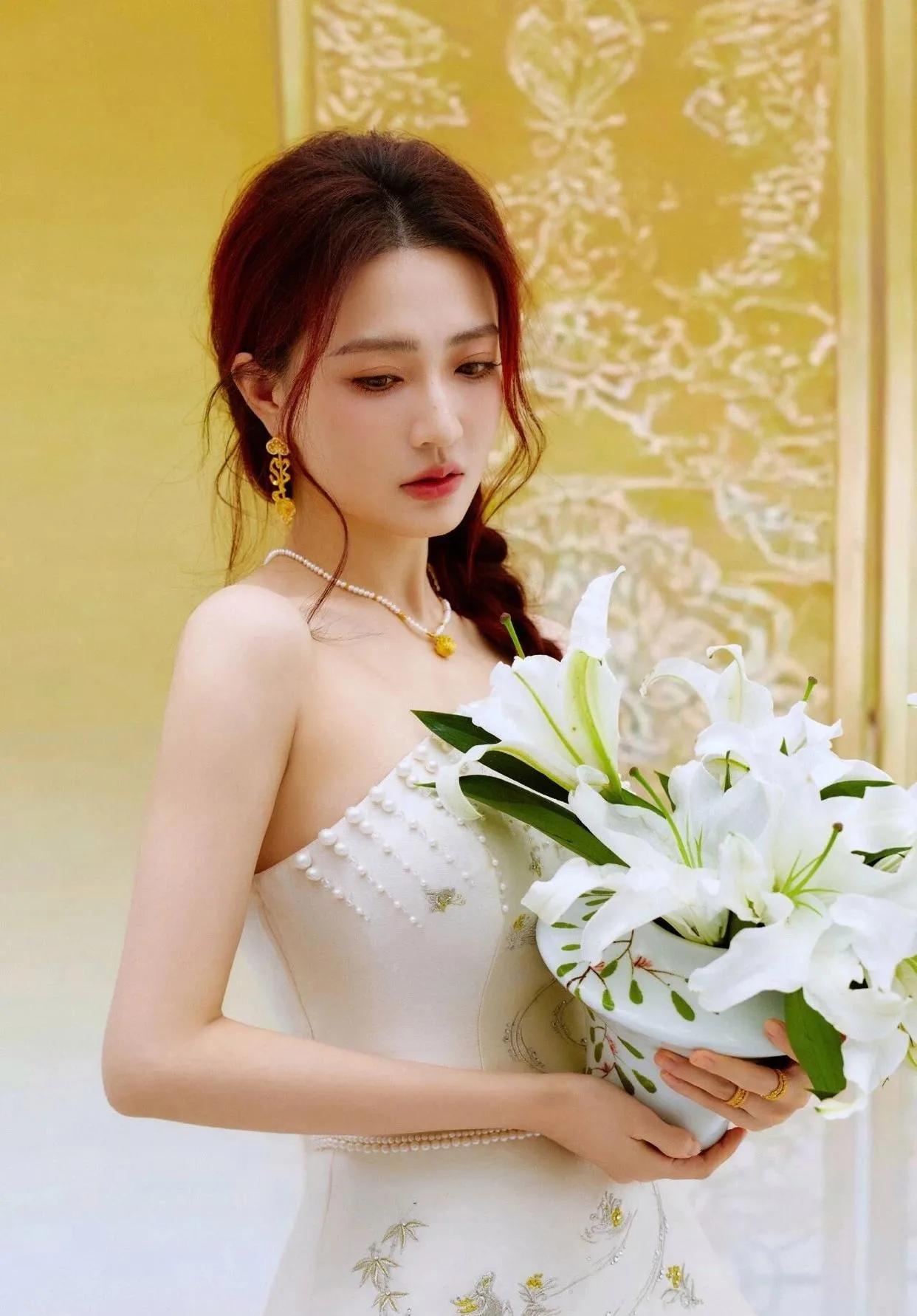 徐璐的国风新造型,美成一幅画了🎨 一袭珍珠刺绣抹胸白裙,搭配古典麻花辫,徐璐把古韵灵动的氛围感拉满了。 手持如意、怀抱百合,她仿佛从古典画卷中走出,既有大家闺秀的温婉,又不失少女的灵动。 徐璐 国风造型
