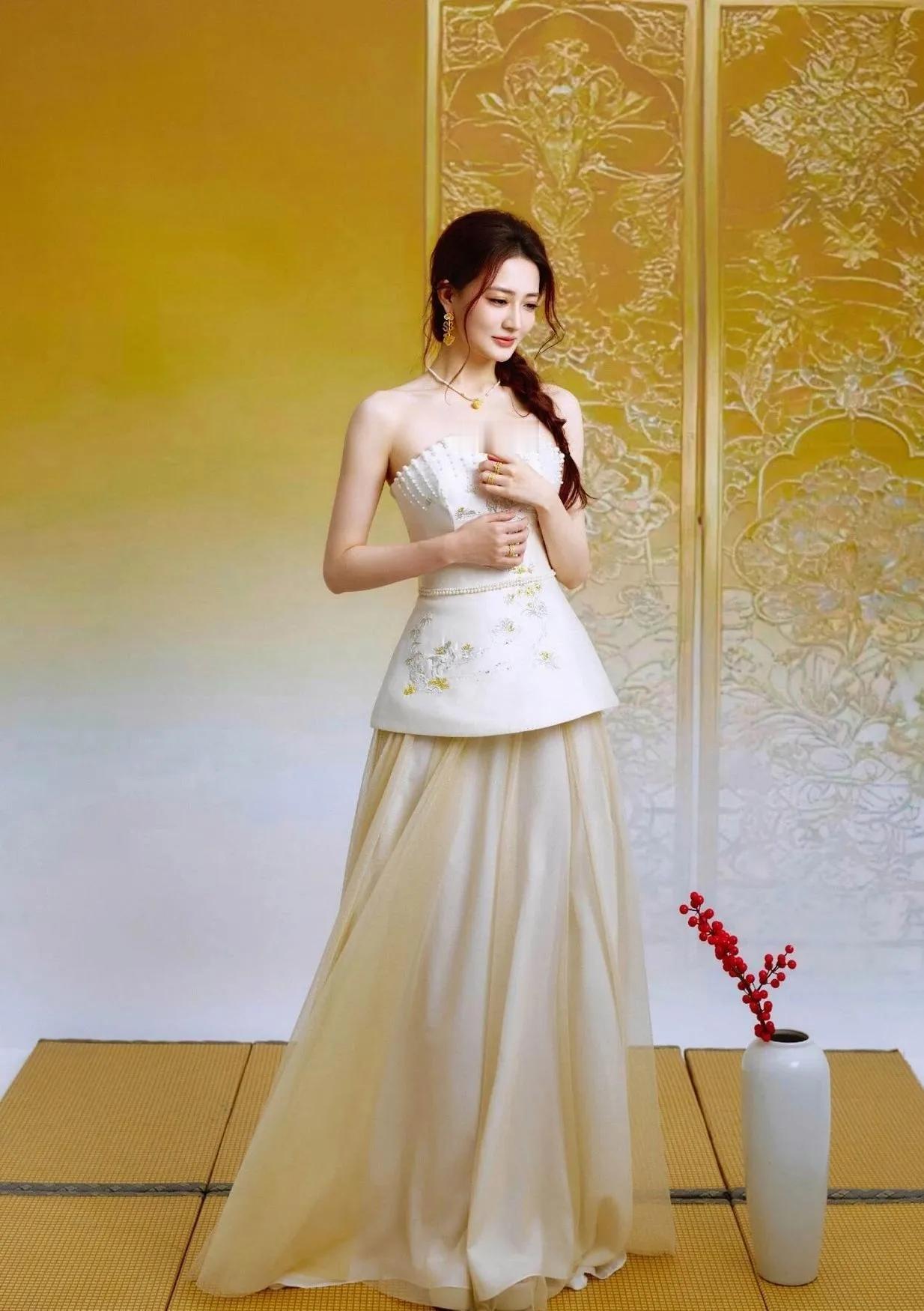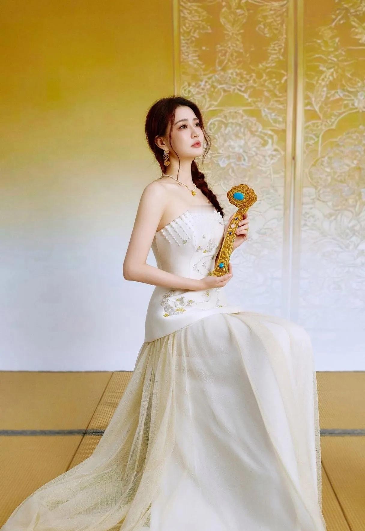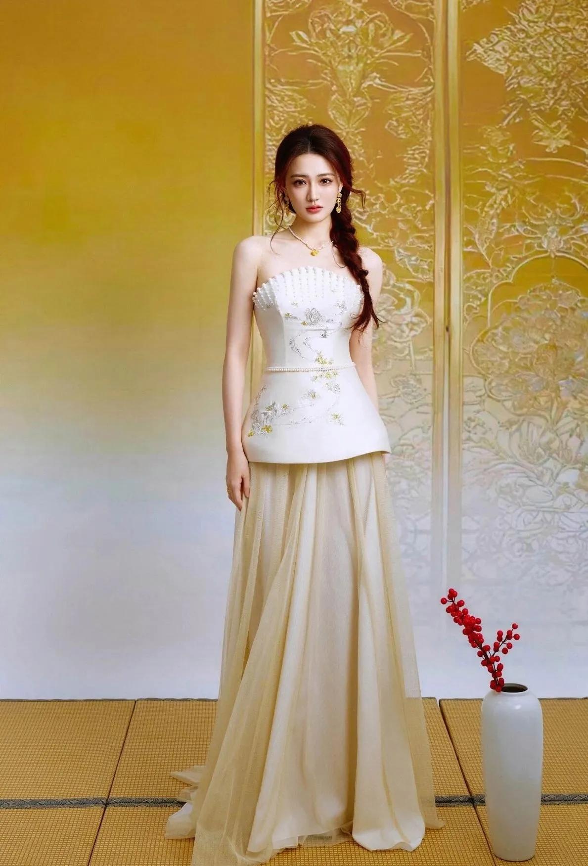 徐璐的国风新造型,美成一幅画了🎨 一袭珍珠刺绣抹胸白裙,搭配古典麻花辫,徐