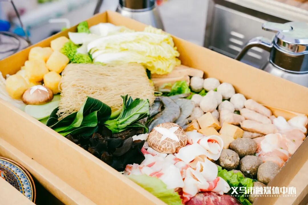 与此同时,美食区香气四溢,人潮涌动。“万国火锅”热气腾腾,汇聚全球风味;刚出炉的“碳水面包”外酥里软,一上架便被抢购一空,摊位前排起长龙。不远处,上海造梦马车剧团的戏剧巡游队伍载歌载舞穿行而过,演员们身着奇幻服饰,与围观的孩子们击掌互动,欢笑声此起彼伏。街头艺术、潮流音乐、地道美食与国际商贸在此刻交汇融合,义乌不仅“卖全球”,更以开放包容的姿态“玩”向世界。