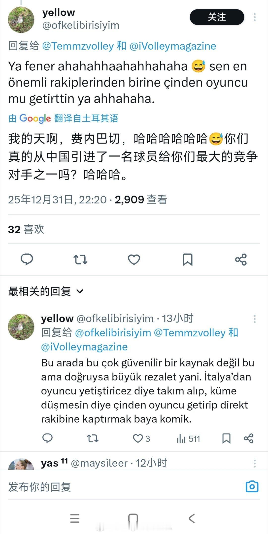 费内球迷得知庄宇珊被科内瞄准后,坐不住了,甚至威胁费内高层,看看第一张评论截图,我得天,这么极端么?烧……死……中国女排庄宇珊