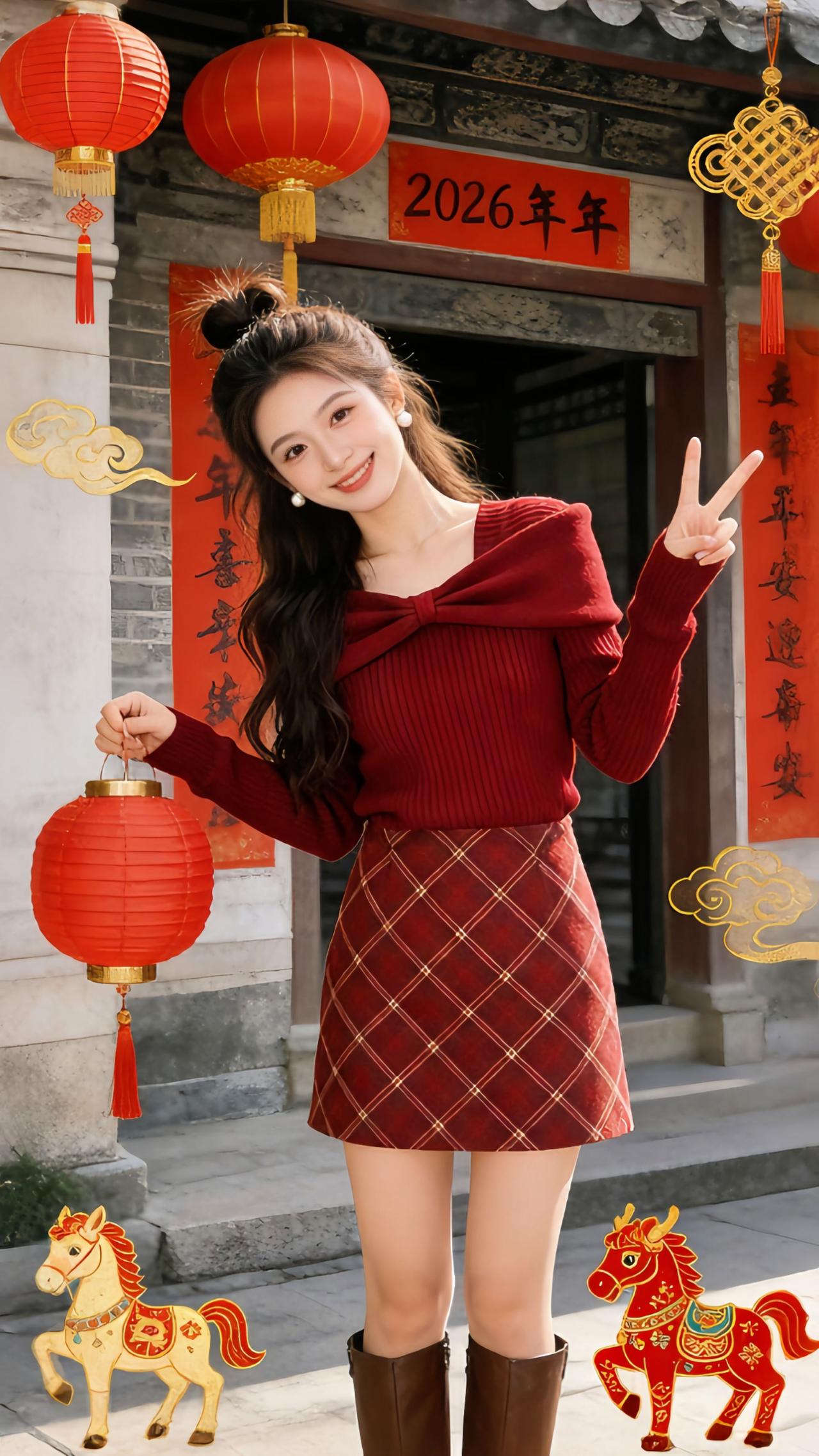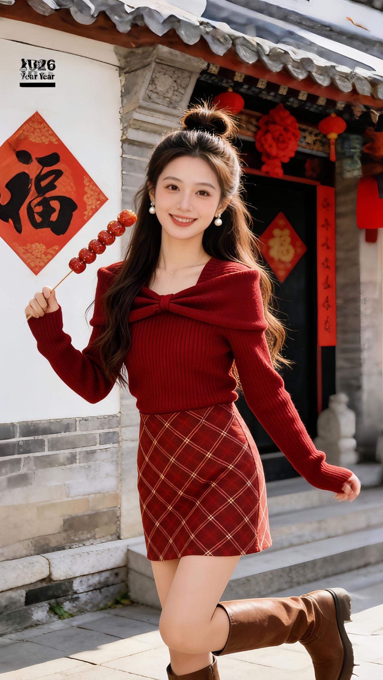 《Danny的新年战袍邂逅记》 在飘雪的服装店里一眼看中这套韩版两件套,扭结针织衫搭高腰格纹裙的设计太戳我了,上手摸起来软糯又舒服,试穿后高腰版型把腰线拉得超好看,显瘦效果很惊喜~ 穿着它去古街拍新年写真,手持糖葫芦、红灯笼和中式古建筑同框,红调穿搭和年味完美融合,走在巷子里回头率满满,这套装直接承包了我整个新年的氛围感穿搭! 新年战袍 韩系穿搭 减龄显瘦穿搭 秋冬韩系穿搭还得看我的 新年战袍准备好了吗 @抖加🔥上热门🔥dou+🔥热点宝 @DOU+小助手 @图文带货帮扶中心