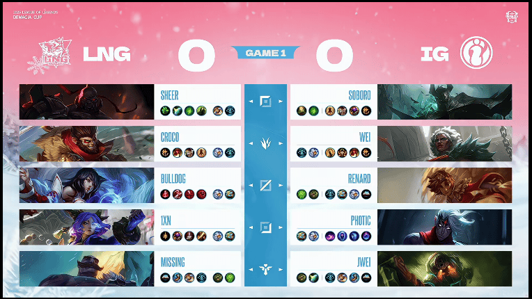 虎扑01月01日讯[GAME1]IG蓝色方,LNG红色方