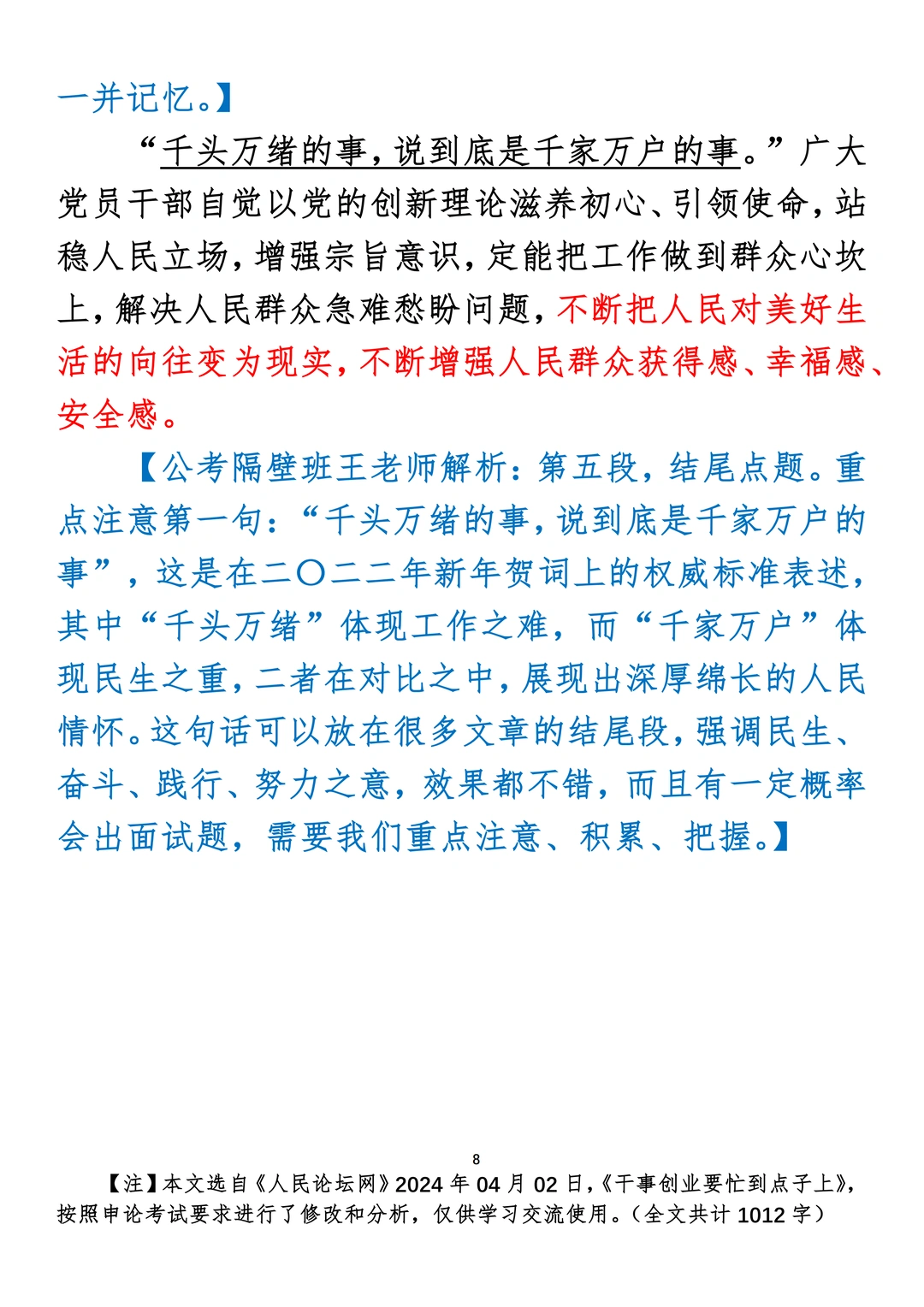 如何抄写:每日抄写文章发在“公考隔壁班王老师”账号,红色字是重点句和结构句,黑色字是正文,蓝色字是解析,大家抄写时不必抄蓝色字。建议先通读全文,做到心中有数再开始抄写,效果会更好。 关于文章:抄写文章来源于人民日报,但每篇文章我都根据申论考试要求进行了修改:一是重写或修改开头、结尾;二是统一段首句句式结构;三是调整段落字数,使文章结构更均衡;四是简化复杂长难句,使之更具可模仿性。每篇文章无论修改多少,都是基于申论考试要求,毫无对人民日报文章品评之意。(此处致敬人民日报)
