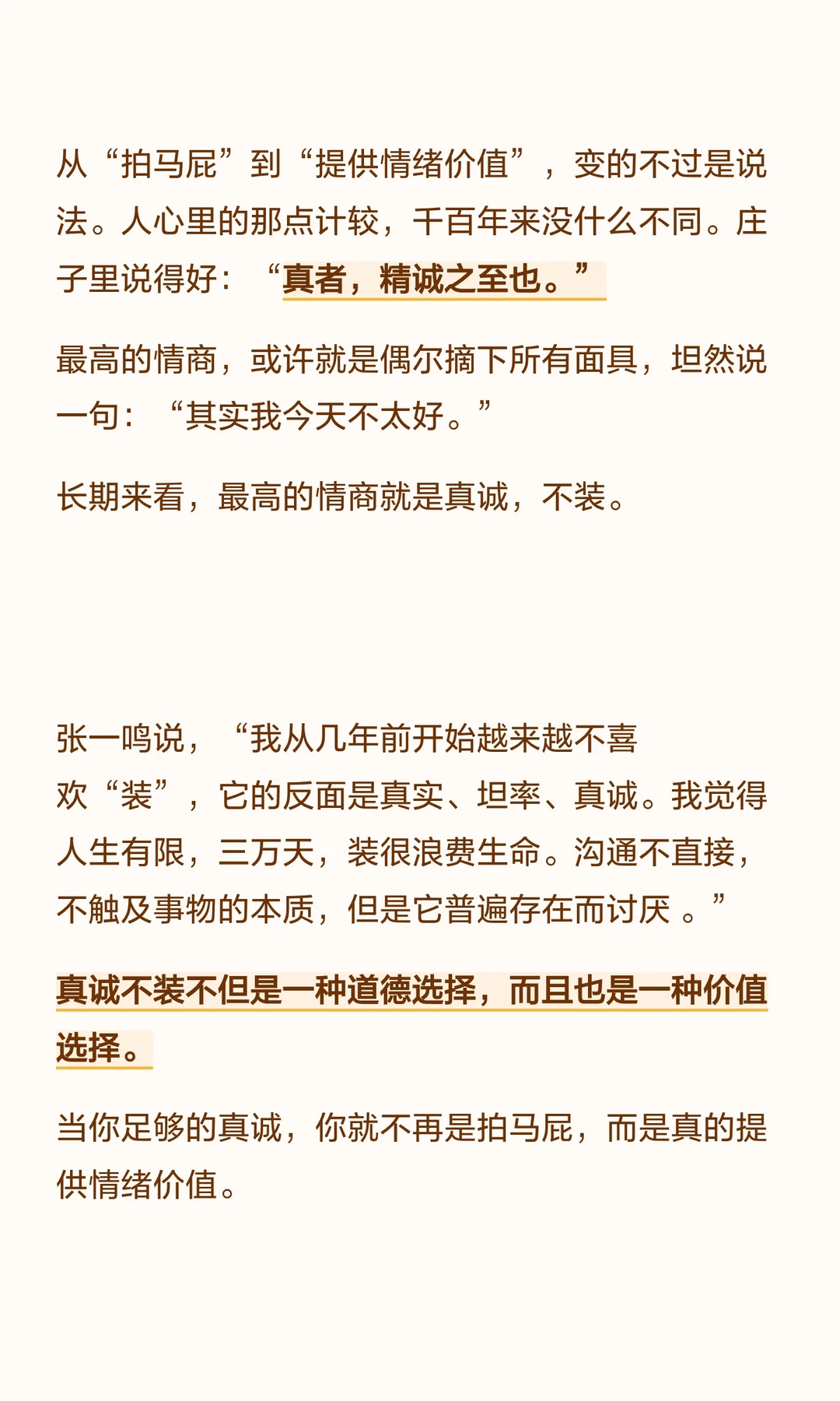 “提供情绪价值”是语言的退化,情绪劳动渗透到日常,成为硬通货。真诚与装的区别在于是否触及事物本质,真诚不装才是最高情商。