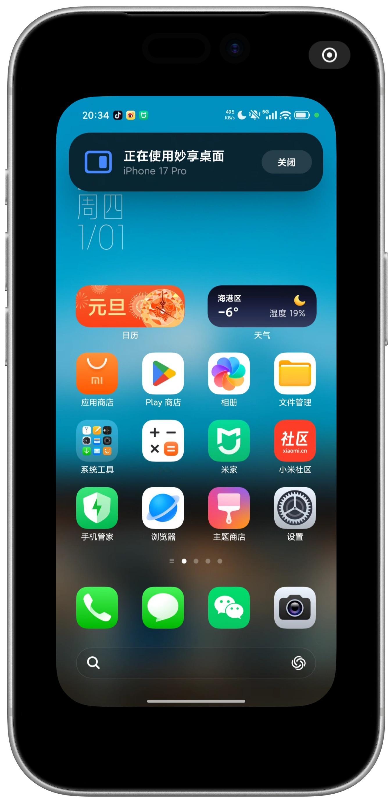 双机党最喜欢的小米 17 Ultra 功能之一不用频繁两个手机切换,拿一台iPhone就可以控制两台设备。iPhone 收到小米手机的微信通知时,直接点通知就可以打开了小米手机上的微信,然后直接回复就行~(这些功能的前提是要在同一个WiFi下,出门如果用小米手机共享热点也可以实现)