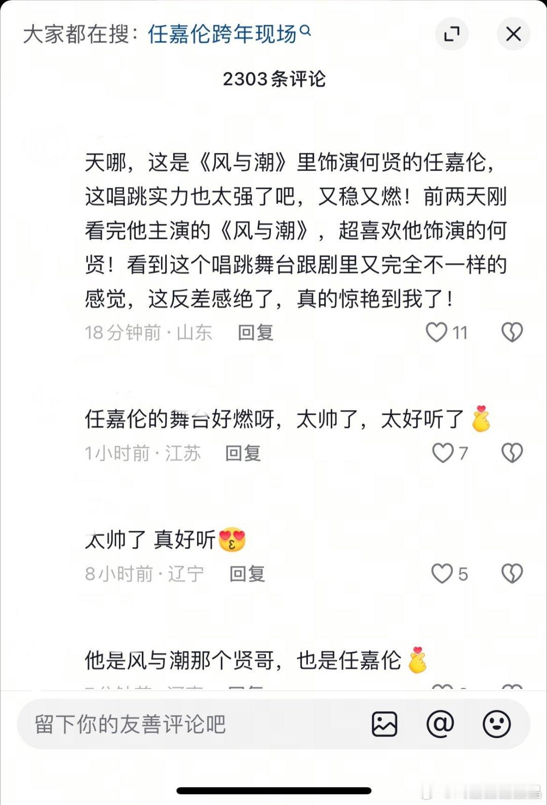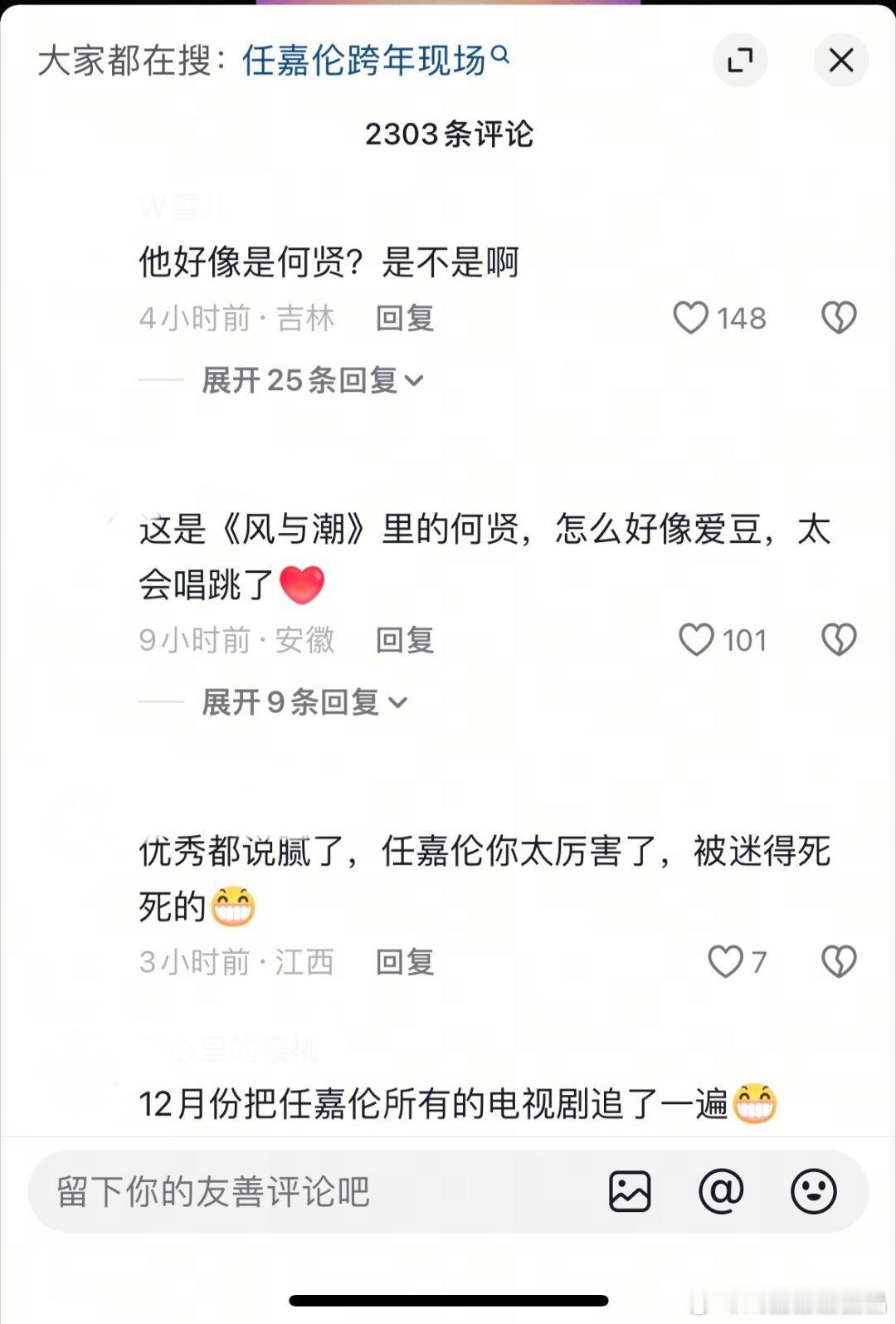 任嘉伦参加江苏卫视跨年晚会广受好评,好多看了电视剧风与潮 的剧粉纷纷震惊:“何贤