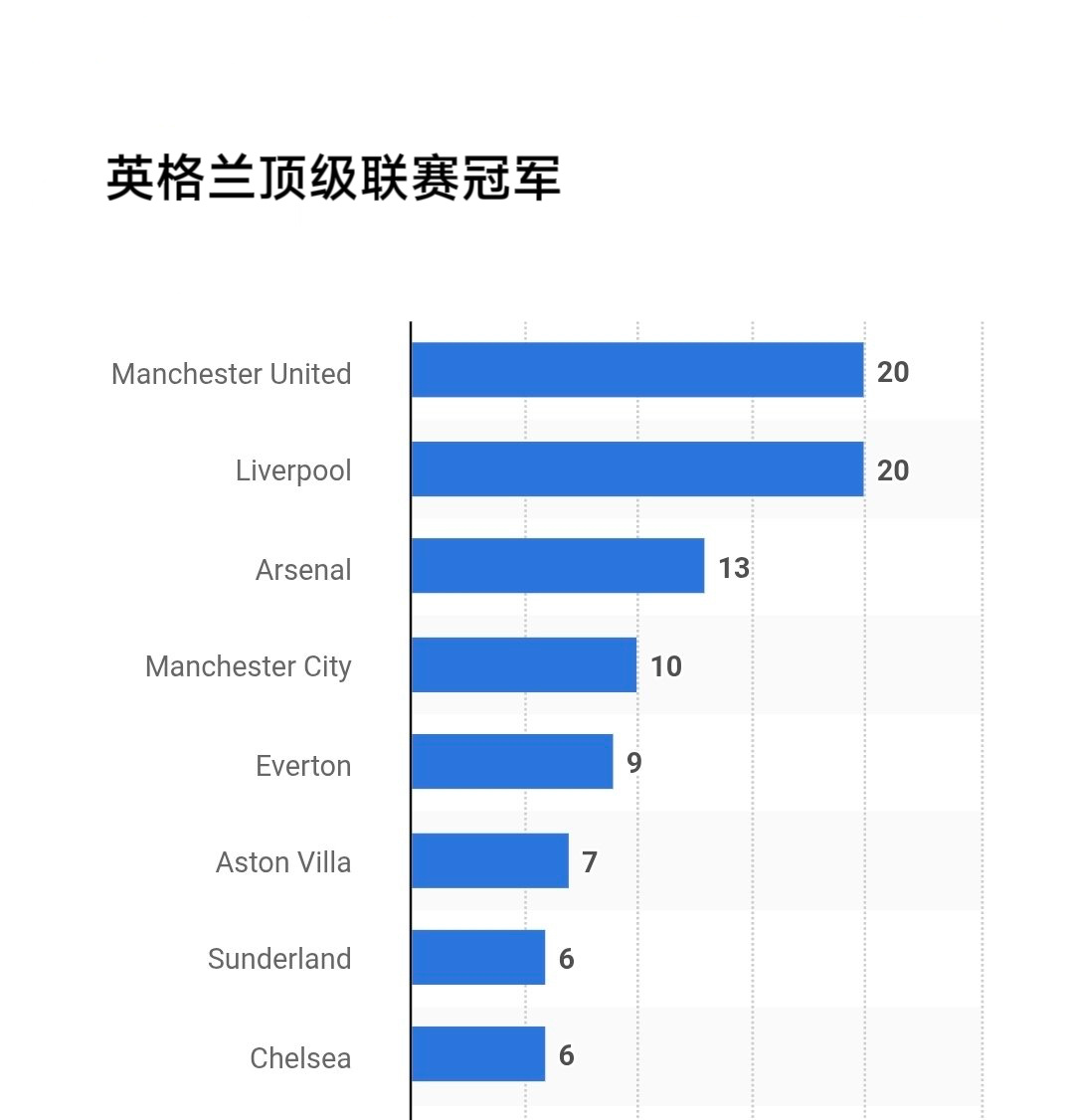 目前英超实时积分榜前八支球队,恰好是夺得英格兰顶级联赛冠军最多的八支球队。