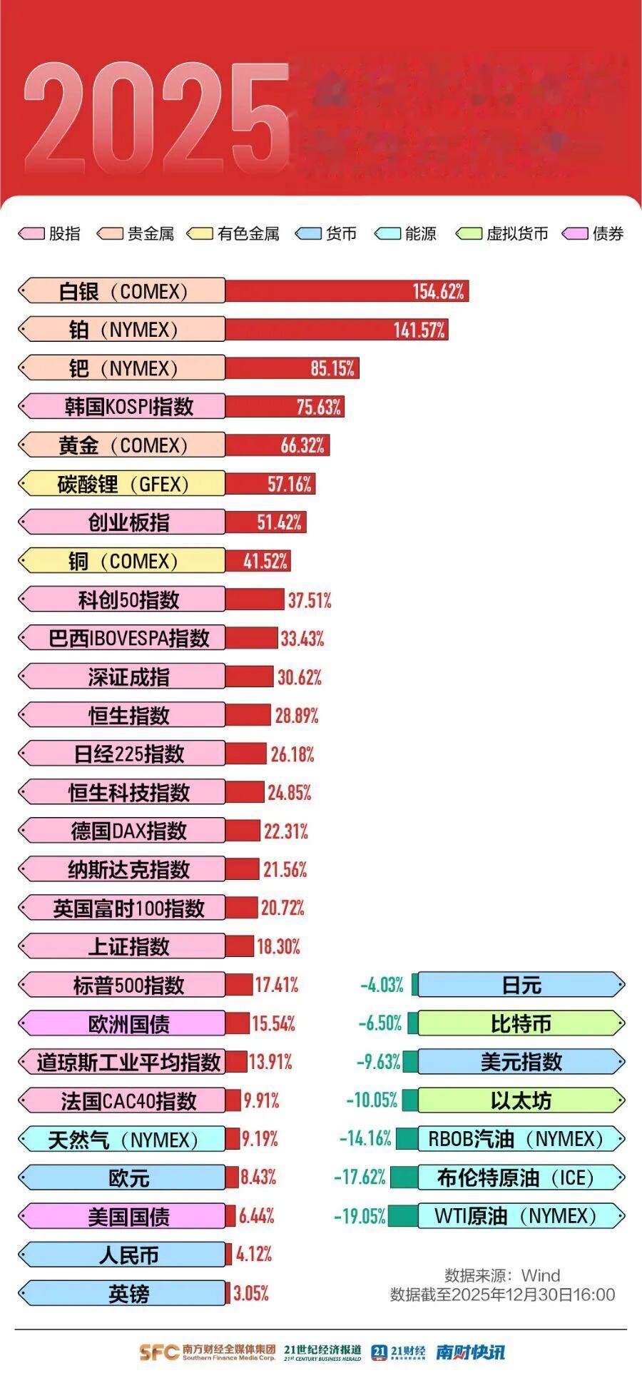 比特币与贵金属的对比尤为明显。在降息预期和地缘政治紧张局势的推动下,黄金屡创新高;白银大幅上涨,铂金也刷新高位。相比之下,比特币的走势更像是一种高波动性资产,即便宏观环境指向更宽松的政策(美联储在2025年9月、10月和12月接连降息),也难以守住涨幅。