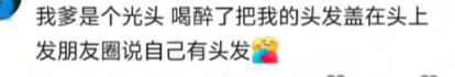 我爹是个光头 喝醉了把我的头发盖在头上发朋友圈说自己有头发