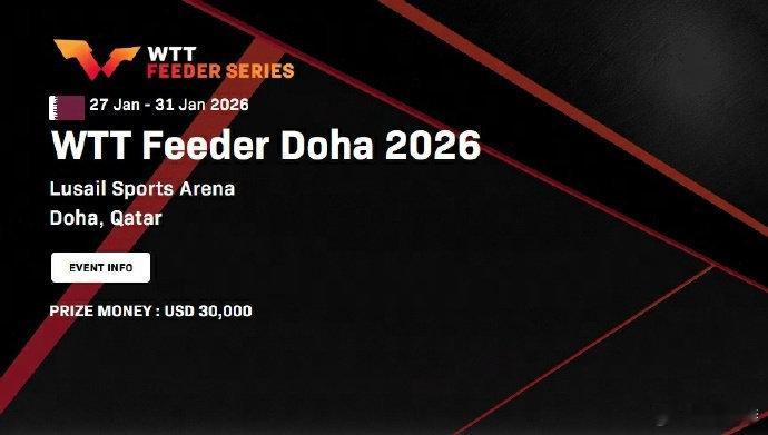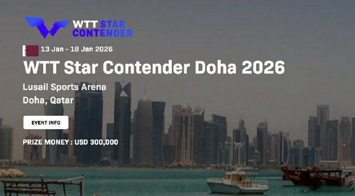 | 2026年1月国乒开启中东密集征战!1月7日至31日连打四站WTT赛事,从多哈冠军赛到支线赛,积分梯度清晰覆盖1000分到125分。(1.7-11)多哈冠军赛,林诗栋、王曼昱领衔单打(1.13-18)多哈球星挑战赛,主力+小将出战三项(1.19-24)马斯喀特常规挑战赛,阵容微调,双打组合重组(1.27-31)多哈支线赛,新生代挑大梁,全员全力冲分。