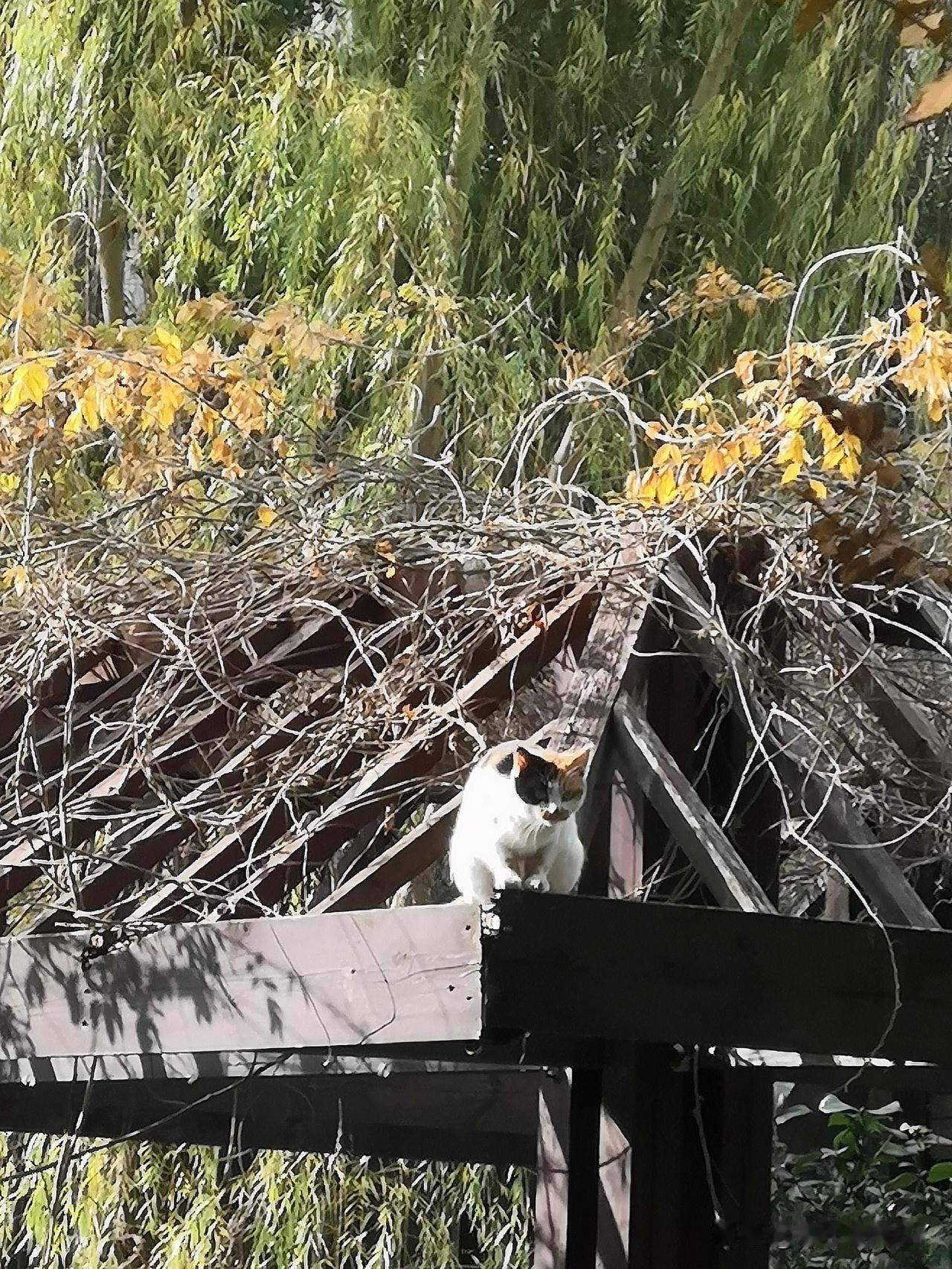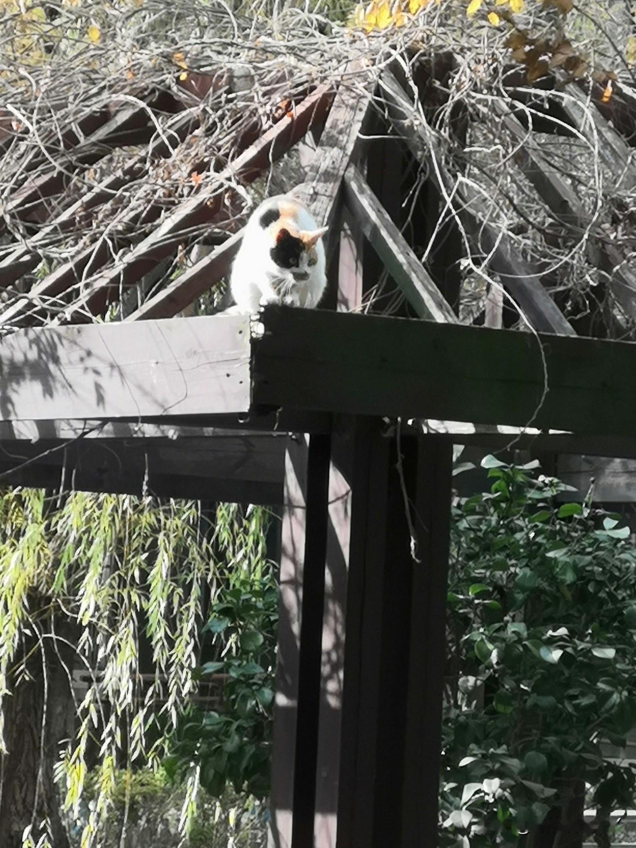 小区里撞见超有趣的一幕!一上一下两只母猫,上方是俏皮的三花猫,下面方是憨萌的橘猫,俩个小家伙对着彼此喵喵叫个没完…… 三花蹲坐在高高的木头植物架上,探下头“喵、喵喵”地唤着,尾巴欢快地甩动,橘猫则蹲在地上仰起头,叫声软乎乎的,不知是三花在喊橘猫上来玩耍,还是橘猫在撒娇讨要零食~ 路过的我看的津津有味,这是我投喂过的流浪橘猫。橘猫发现了我,赶忙跑了过来,站在汽车旁。 俩小宝贝的喵星对话,有没有懂行的朋友来解读一下呢? 三花橘猫流浪猫