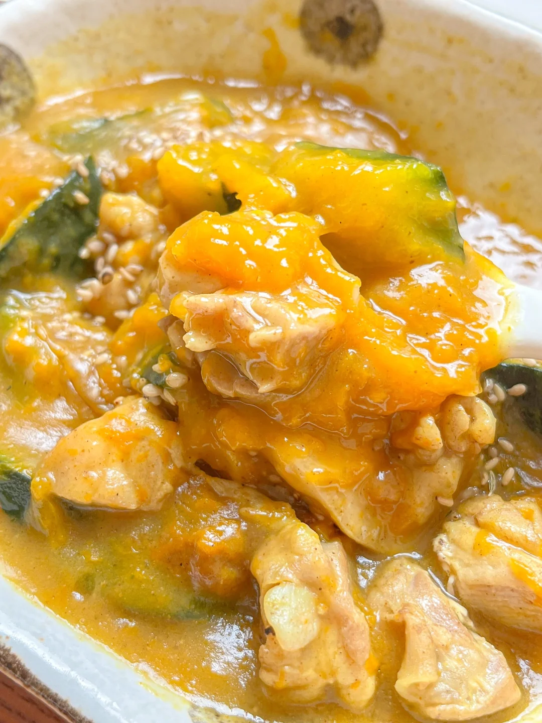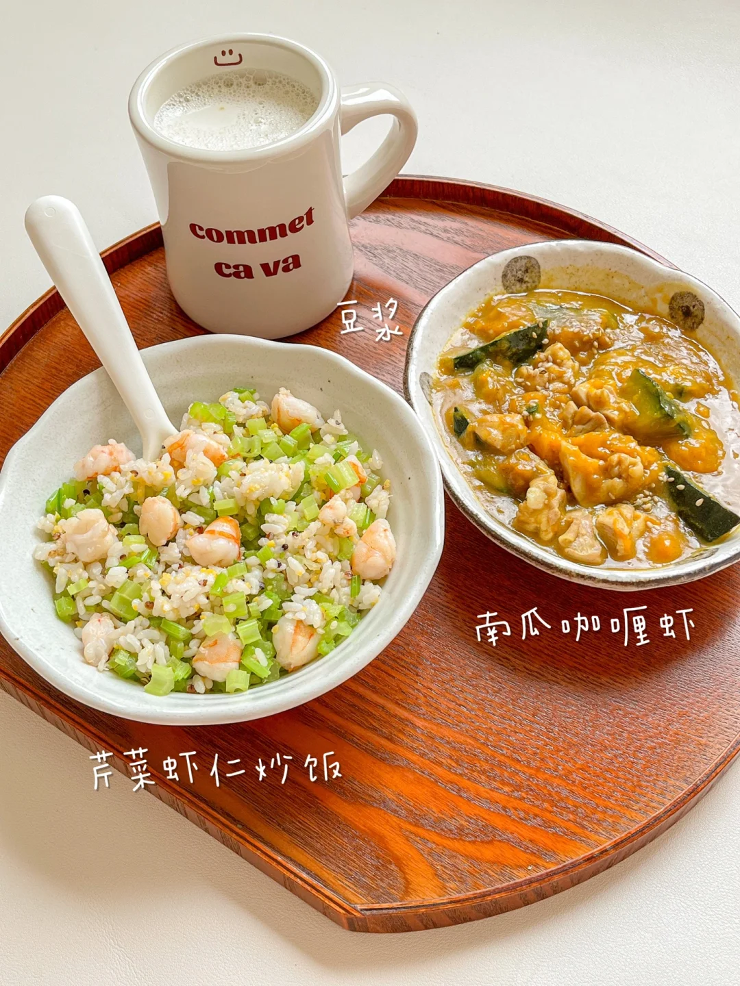 “我们不要抵触新鲜天然的食物,比如米饭、西瓜、猪肉、猪油,少量吃是没问题的!需要警惕的是深加工食品,已经没什么营养但是富含糖、盐、脂肪的食物。” 今日午餐: ¹芹菜虾仁炒饭 ²咖喱南瓜鸡 ³豆浆 🟢芹菜虾仁炒饭 我可太爱吃芹菜了,平时都是炒肉丝或粉条,没想到跟虾仁一起炒也很好吃!芹菜切小丁,清炒就行,保留脆脆清新的口感 🟠咖喱南瓜鸡 只要有米饭,咖喱菜就是米饭小偷!用了两种南瓜:狗头南瓜和贝贝南瓜。都是粉糯糯的,微甜,只放一个咖喱块就够了。咖喱块记得选没有反式脂肪酸的