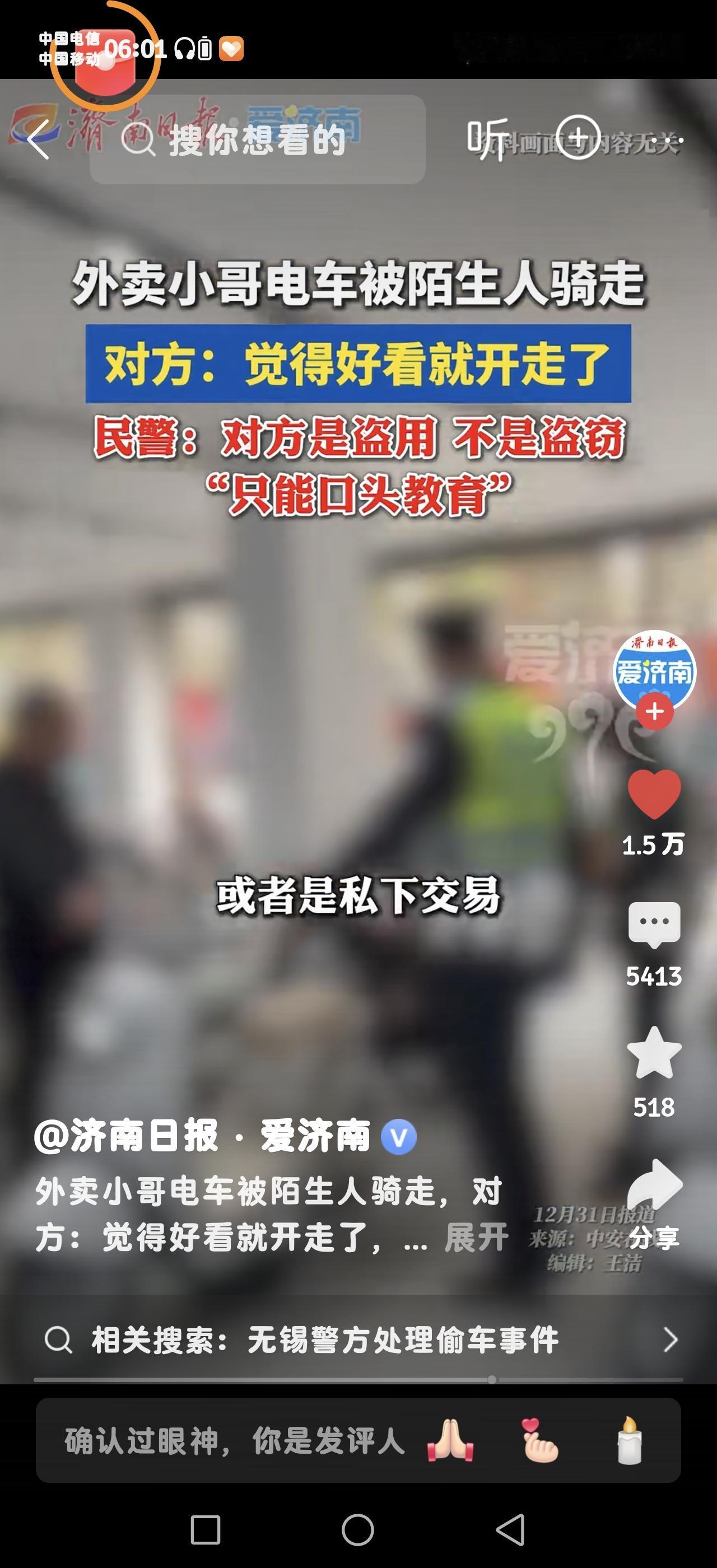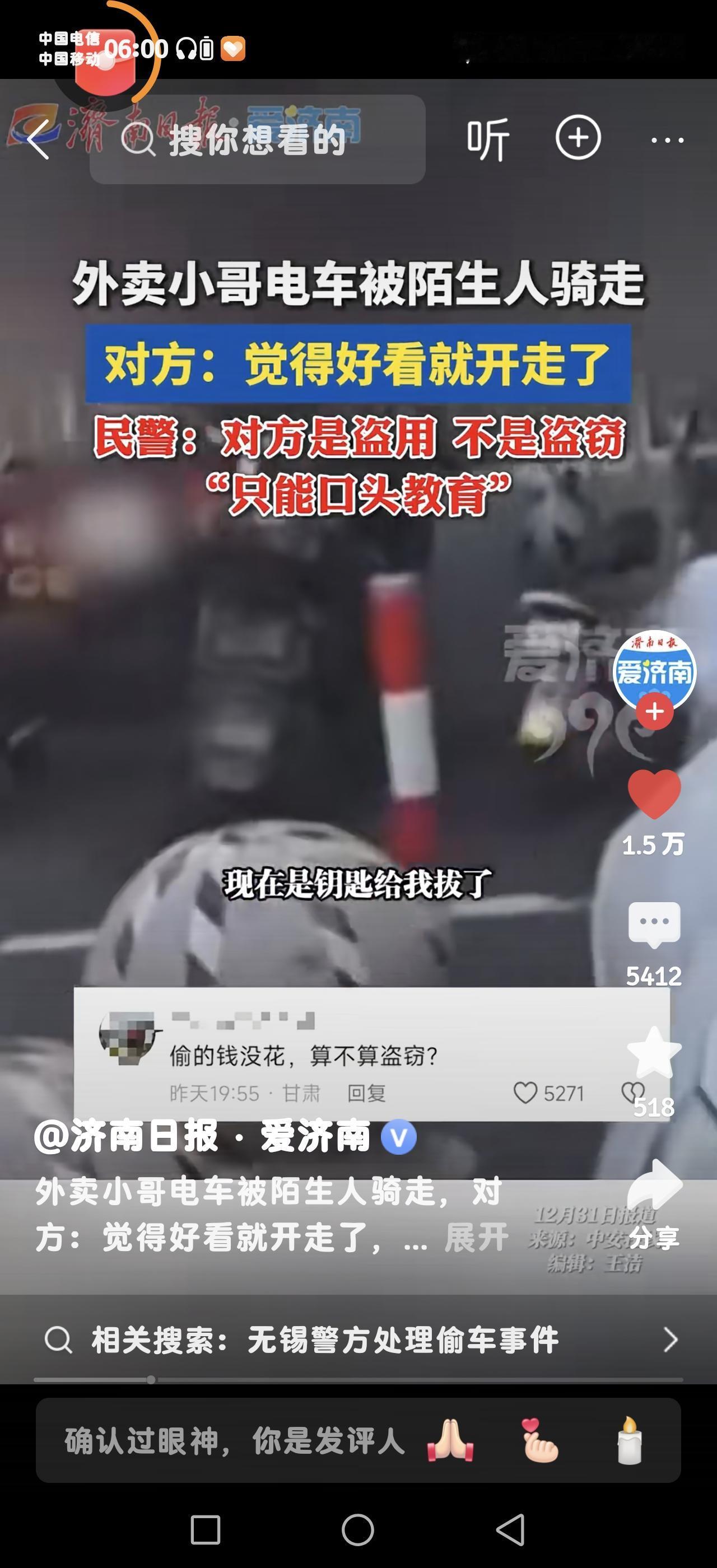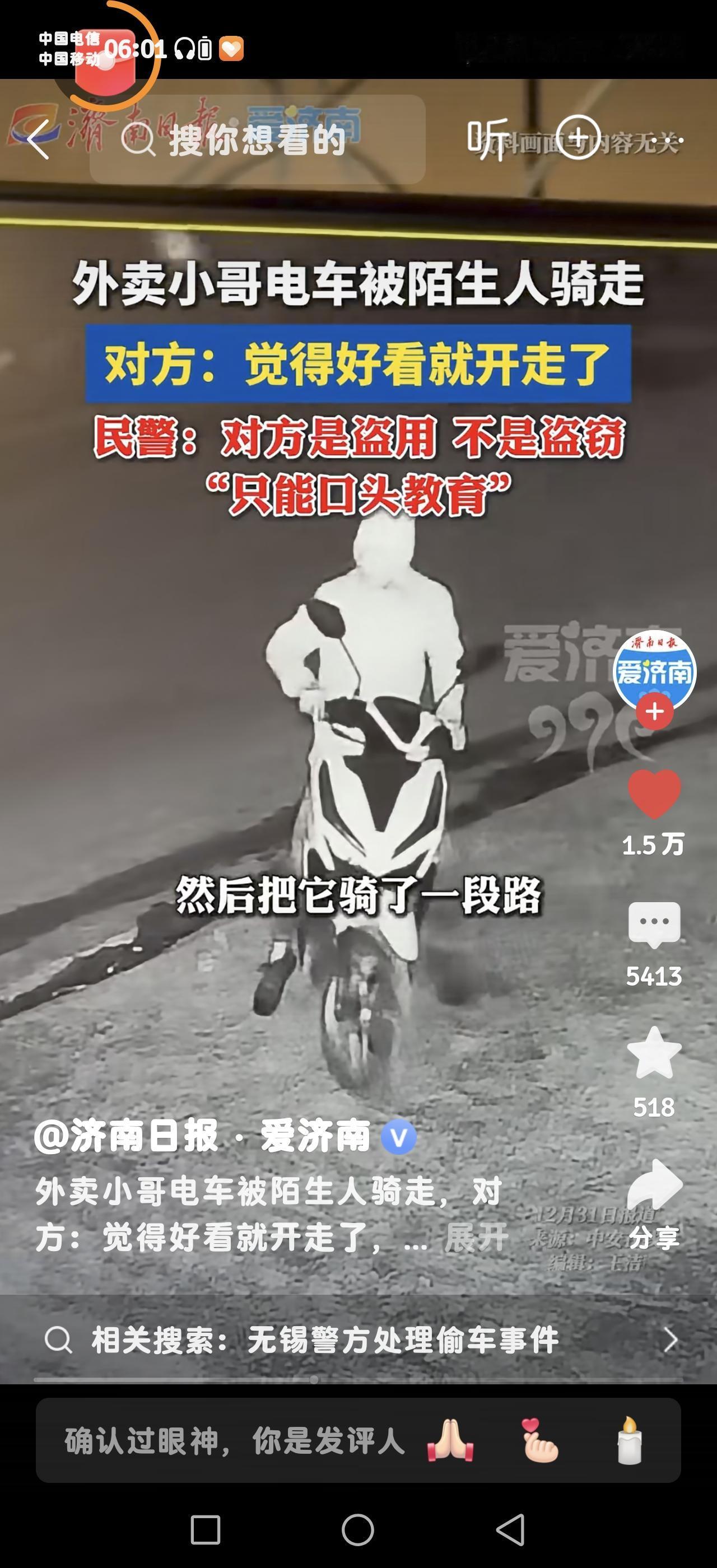我的汽车停在车位,钥匙没拔,对方把我车开走了,抓到后口头教育,他看我的车好看,想开,就可以无罪了???
