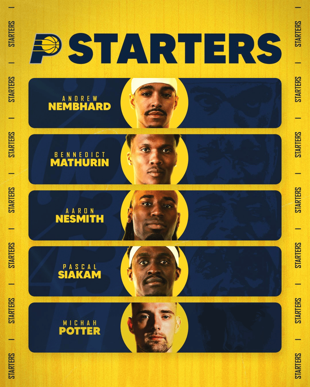步行者首发:内姆布哈德、马瑟林、内史密斯、西卡、波特