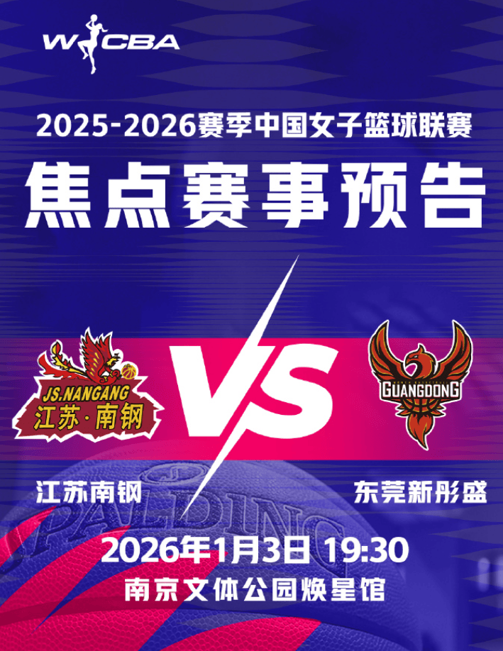 虎扑01月03日讯WCBA分享焦点赛事预告:今晚广东女篮将对阵江苏女篮。