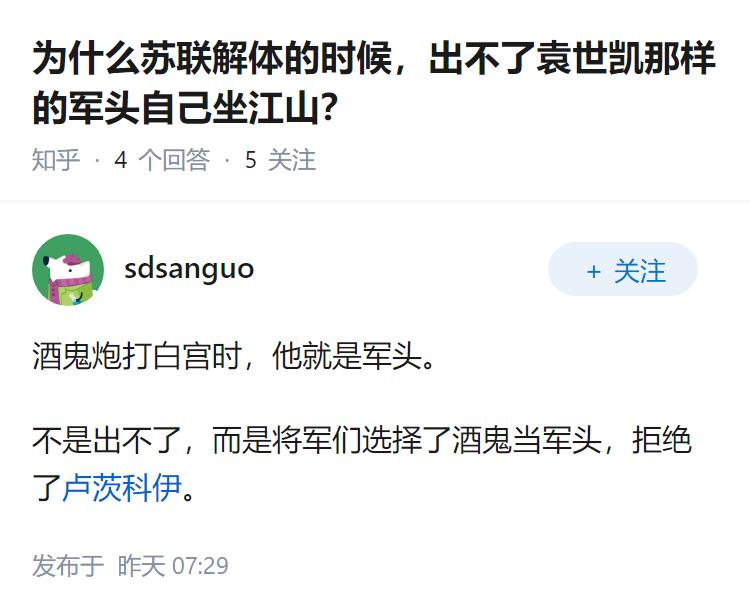 为什么苏联解体的时候,出不了袁世凯那样的军头自己坐江山?