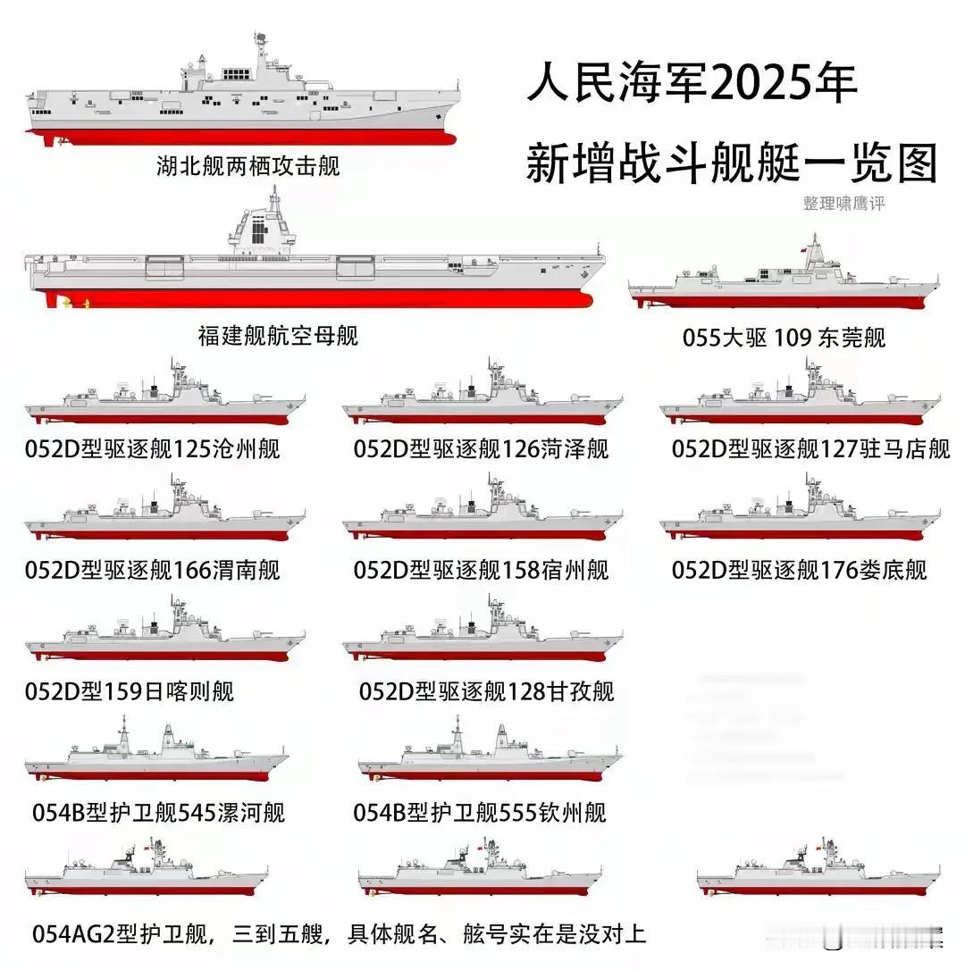 2025年又是一个海军丰收大年,我国一口气入列了21万吨,相当于半个英国或法国海军舰队的规模。 这其中,光052D就入列了8艘,这在外军简直就是不敢置信。更别说一艘福建舰,一艘湖北舰,还有一艘055大驱东莞舰。 现在来看,052D应该是最成熟的型号了,055估计要优化之后,才会走量。中国海军舰队 中国海军 海军更强大 052d改进型 052D舰
