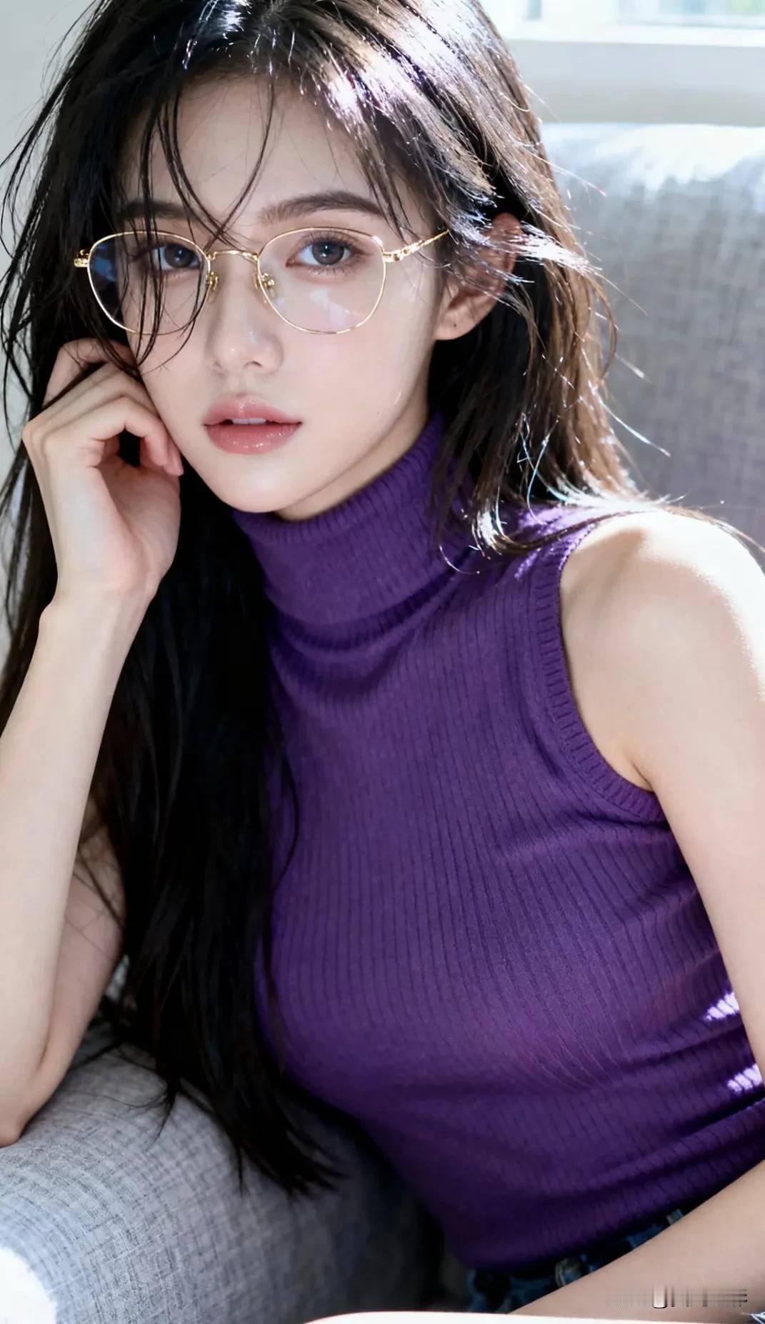 光之影 温柔紫调,甜美少女风,眼镜与发丝的完美搭配 甜美眼镜 紫色衣服眼镜女