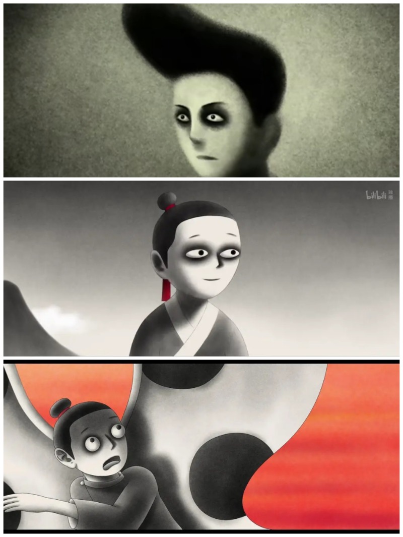 《中国奇谭2》的第一个故事,想成为三条龙的小蛇,估计户口本也是浪浪山的,故事和骨髓上,基本在复刻《小妖怪的夏天》。到了《耳中人》,终于又见到了胡睿导演作品里祖传的“黑眼圈”,还好没人说魔童哪吒和“志怪插图+德国表现主义+哥特风”有什么瓜葛。
