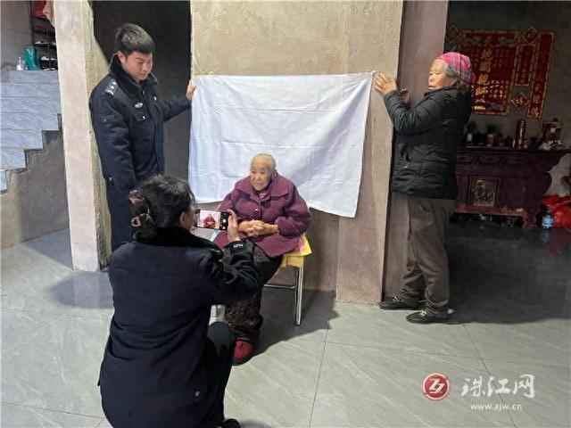 了解情况后,户籍窗口辅警丁娅丹没有丝毫推诿,她一边安抚陈女士情绪,一边承诺:“您别急,今天下班后我们就过来。”尽管日常户籍业务繁忙,她仍决定利用休息时间解决群众的特殊困难。下午下班后,丁娅丹与同事小姚携带拍照设备,驱车十余公里赶往老人所在的李家营村。途中预留的电话始终无法接通,二人只得在村里一路询问、多方打听,最终找到了老人的家。见到辅警上门,老人的儿媳连连道谢。丁娅丹小心协助老人调整姿态,在有限条件下反复拍摄,最终成功采集到合格的人像照片。她向家属说明,已为老人申请“绿色通道”,预计七日内即可制好证件,并可到指定邮政网点领取。“老人身体不好,时间耽误不起,真的太感谢你们了!”家属紧紧握住丁娅丹的手,言语中满是感激。婉拒留餐的盛情后,丁娅丹与小姚匆匆返回。尽管天色已晚,丁娅丹仍先赶回户籍室,将老人的办证信息全部录入系统,完成流程后才放心离开。