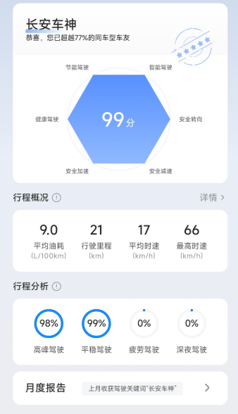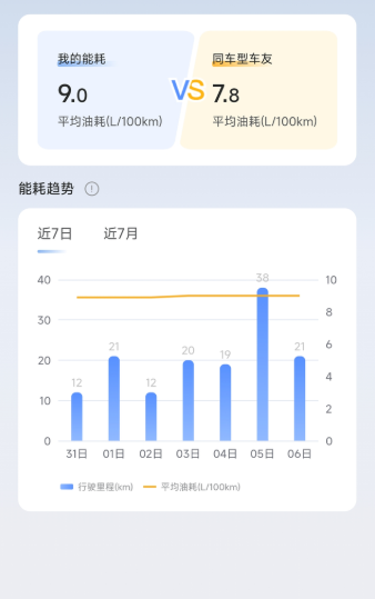 提车三个月,四代大白油耗分享 先说下我的用车场景:我最基础的用车场景就是上下班代步和接送媳妇孩子,大多数的行车时间段都是早晚高峰。每日行驶里程20公里左右。因过年串亲戚和回总部参加公司年会恰巧赶上跑了两趟高速,这也是我一年中为数不多的高速行程。 下面将我的油耗分析分享如下:截止今日,我总计行驶里程2560公里。目前表显油耗9.0L/100km,剩余可行驶里程147公里。 先从高速行程说起,我所行驶的这2560公里中总计包含了两次往返外地的高速路程,两次往返路程分是440公里和600公里也就是共计约1000公里左右,驾驶模式均采用智能模式。因是新车且我一年中很难有跑长途高速的情景,所以这两次高速行驶途中我特地做过对应的测试,往返440公里这次外出单次行程约220公里,使用智能巡航辅助模式驾驶去程和全程脚踩驾驶返程时候发现,五人满载巡航时速约110km/h情况下智能巡航辅助模式表显本次行驶记录中平均油耗约为6.8L/100km;全程脚踩模式下平均时速相当的情况下表显本次行驶记录中平均油耗约为6.2L/100km。往返往返600公里这次外出单次行程约300公里,使用智能巡航辅助模式驾驶去程和全程脚踩驾驶返程时候发现,车载两人巡航时速约110km/h情况下智能巡航辅助模式表显本次行驶记录中平均油耗约为6.3L/100km;全程脚踩模式下平均时速相当的情况下表显本次行驶记录中平均油耗约为6.1L/100km。实际加油后计算发现,实际计算油耗约为7.3L/100km左右。 其余的行驶路程约1560公里就均上述用车场景中的日常市区代步。早晚高峰行驶比例约占市区行车时长的90%,行驶路段均为市区市中心较为拥堵路段。每次行车时我都会特地将显示调整为本次行驶模式,观察发现:特别拥堵时表显本次行驶平均油耗会超过10L/100km。目前正值学生放假道路情况良好,但由于市区红绿灯较多缘故,即使不算拥堵的路口表显本次行驶平均油耗也会在8.8L/100km左右。至于驾驶模式,我尝试过智能模式和节能模式,但是由于单次路程较近只有10公里左右所以区别貌似并不是太大,但是冷车启动时候的油耗会偏高一些。