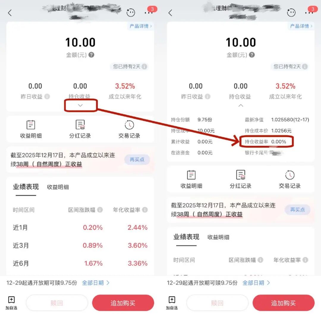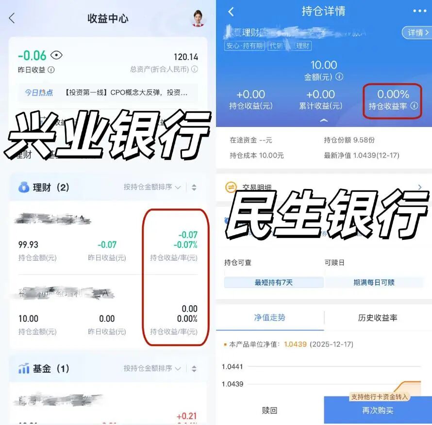 3、少数银行仅展示以元为单位的持仓收益,而不展示收益率。