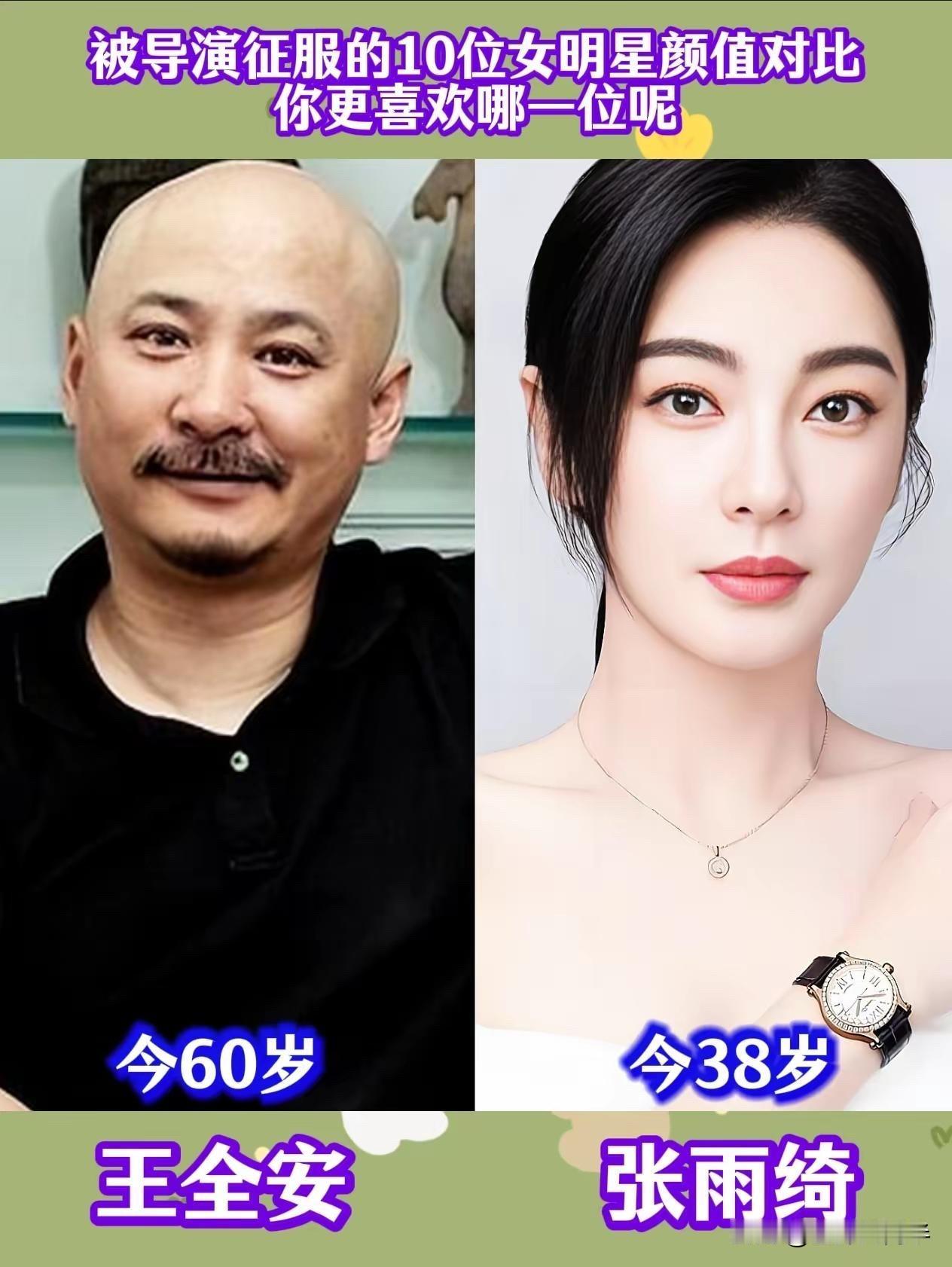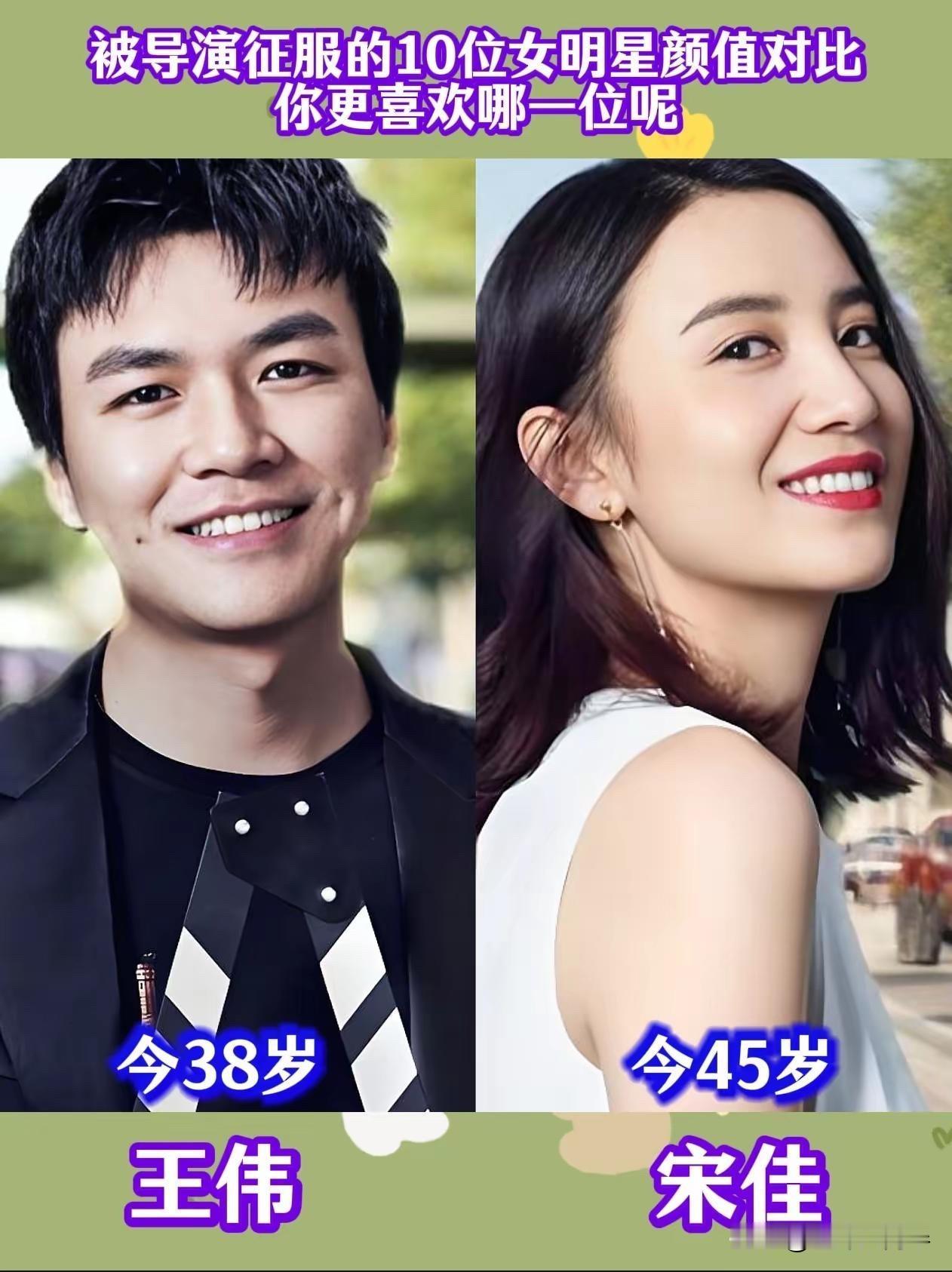 导演们的眼光可真中!看看这几位女明星的颜值与实力 导演王伟今年38岁,相比其他大导演算是年轻一代。他执导的《隐秘的角落》《狂飙》可是火遍全网,悬疑紧张,人物刻画得入木三分。能被他看中的女演员,肯定不光是长得好看。 宋佳今年45岁,比王伟还大几岁,但这姐的状态真是保持得杠杠的。从《闯关东》里的鲜儿,到《悬崖》里的顾秋妍,再到《人世间》的周蓉,宋佳演啥像啥,那股子倔强又柔韧的劲儿,特别抓人。她不是那种第一眼惊艳型,但越看越有味道,演技扎实,能扛剧。 管虎导演今年58岁,作品风格硬朗、生猛,像《老炮儿》《八佰》,都是男人戏,但里头的女性角色也个个出彩。他媳妇儿梁静,今年52岁,早年也是演员出身。 梁静演过《女子特警队》《黑洞》,后来慢慢转向幕后,成了管虎的得力制片人。她不仅是管虎生活中的伴侣,更是他事业上的搭档。 王全安导演今年60岁,他的《图雅的婚事》拿过柏林金熊奖,电影关注现实,有股子西北的粗粝感。张雨绮今年38岁,以《长江七号》中温柔的女老师出道,但真正让她大火的是《女人不坏》《白鹿原》还有《美人鱼》里那句“追我的人排到法国”。 她跟王全安合作了《白鹿原》里的田小娥,这个角色复杂、野性、充满悲剧色彩,张雨绮演得大胆投入。虽然后来两人婚姻短暂,但作品留下了