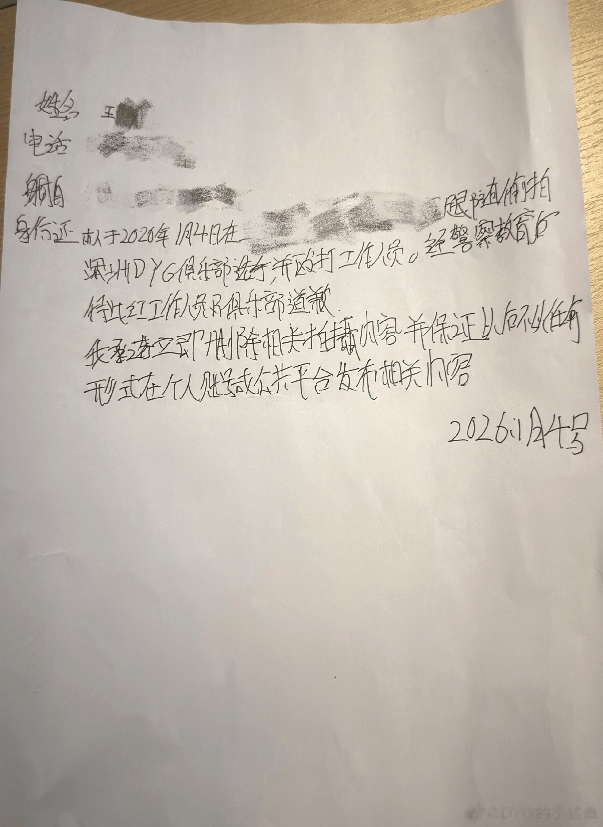 经公安机关调节,该人员已认识到自己的错误并手写道歉信进行深刻检讨。
