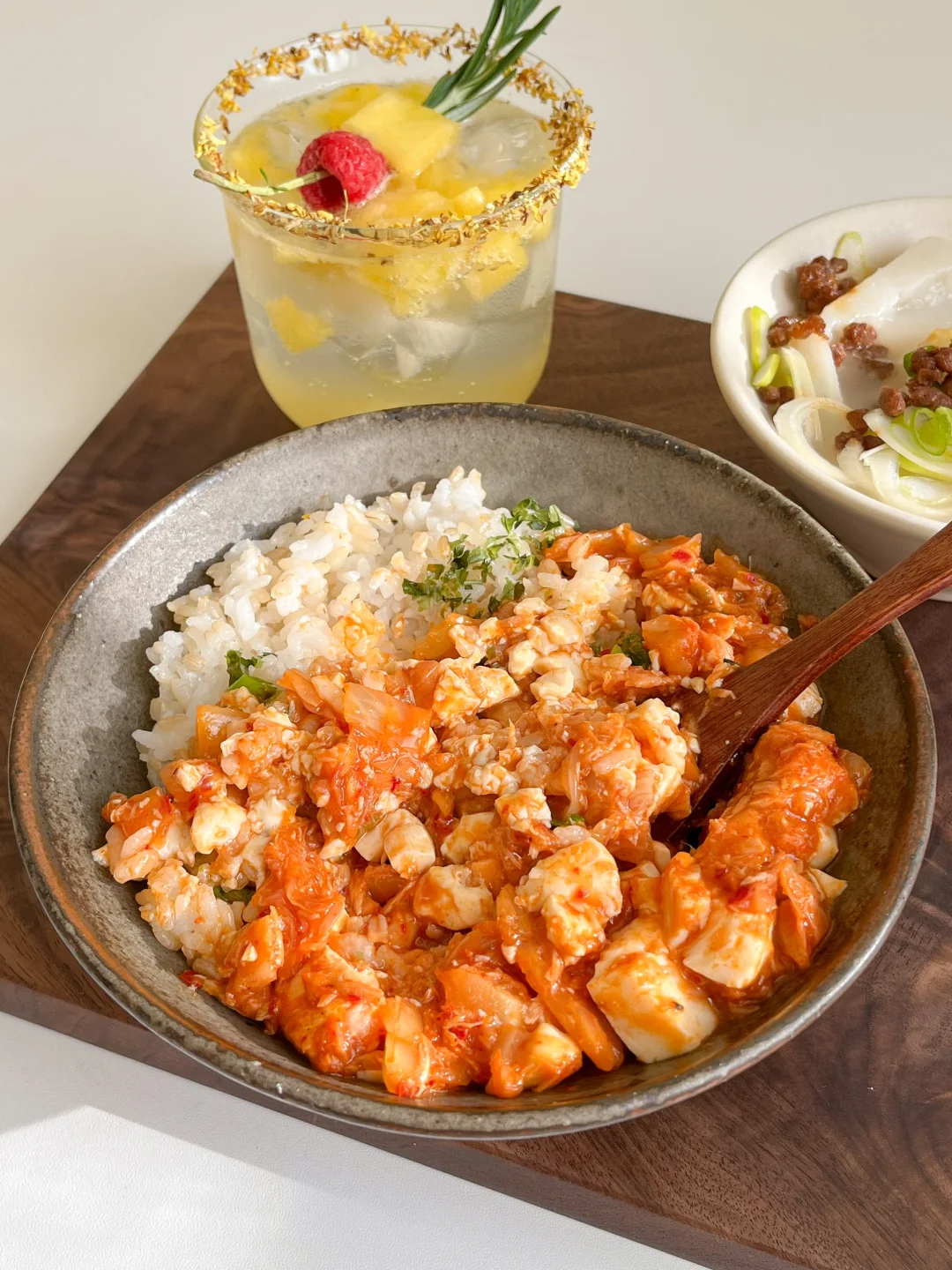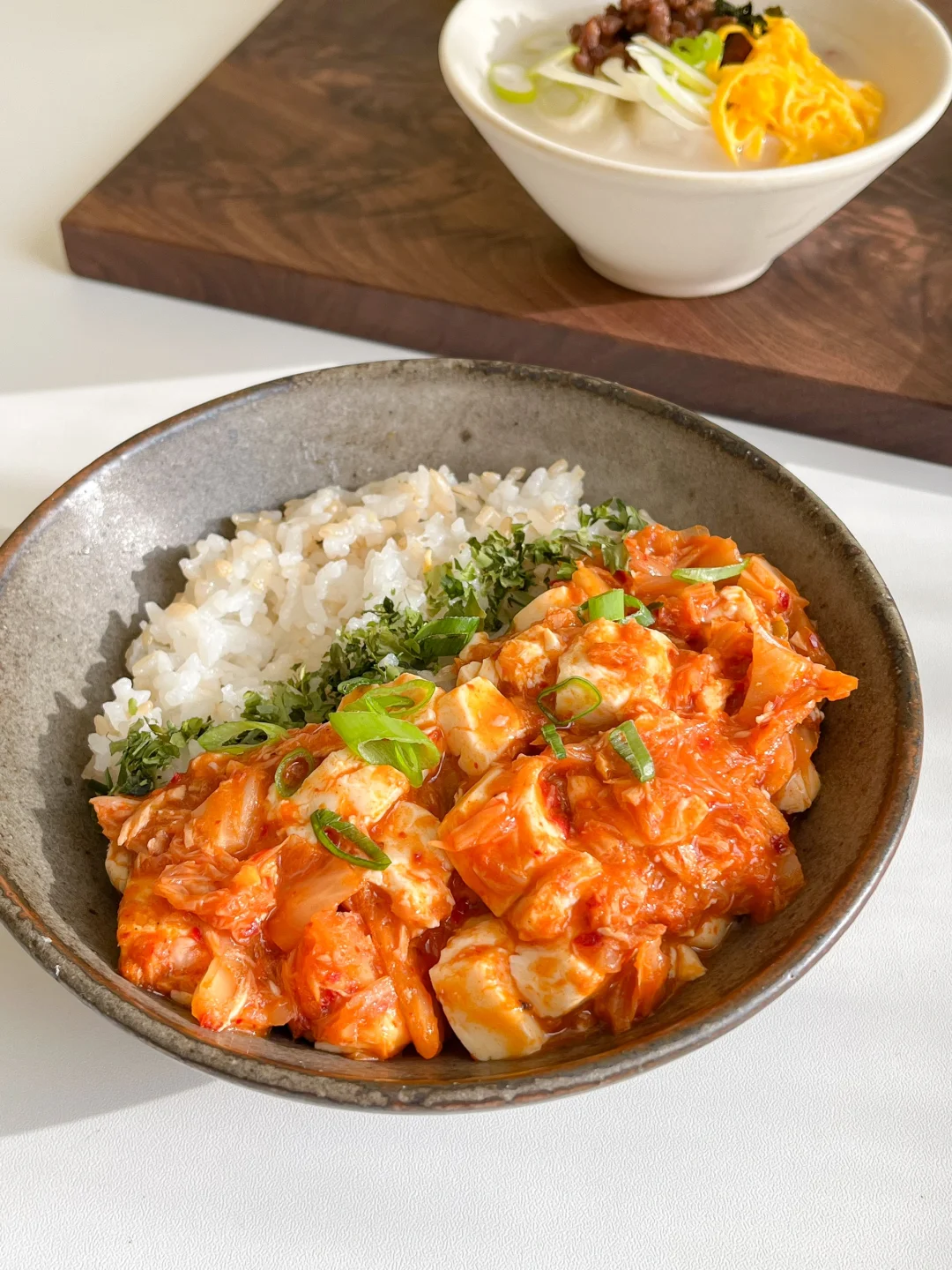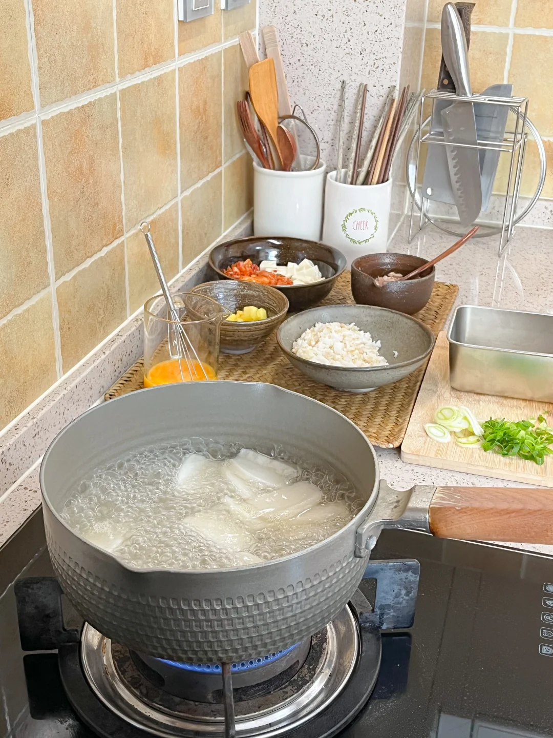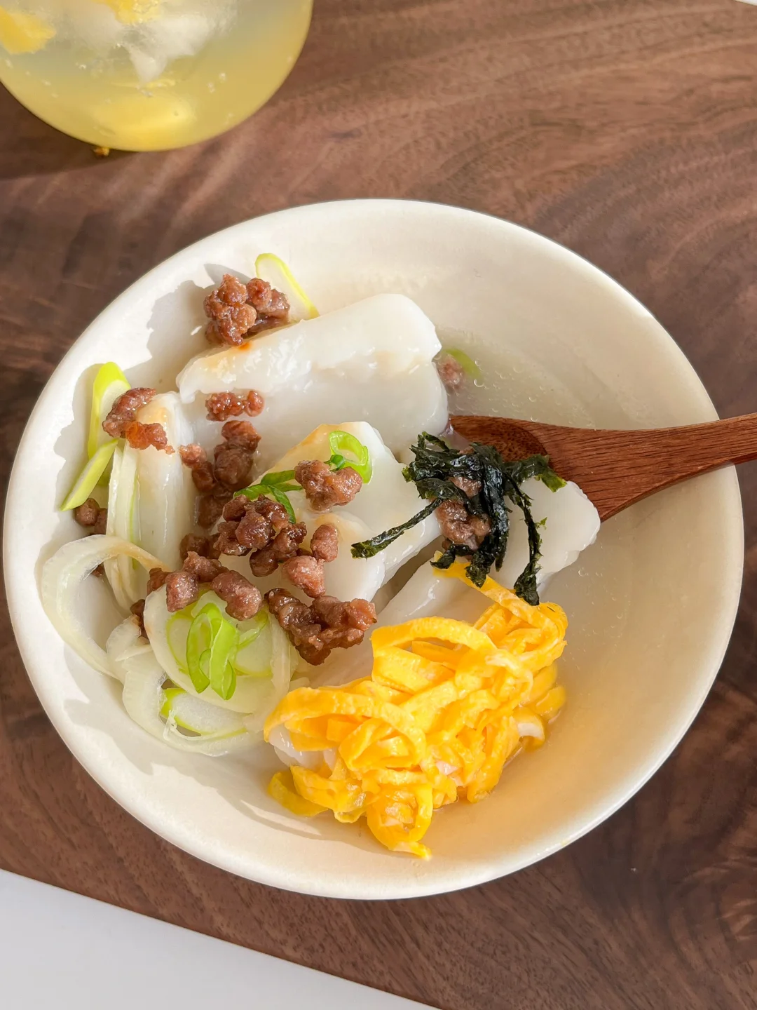 “昨晚又开始看鬼怪了,新年应该喝一碗热乎乎的年糕汤吧,最重要的大葱可别忘了~” 今日午餐: ¹年糕汤 ²泡菜金枪鱼豆腐拌饭 ³菠萝气泡水 年糕我用的是片片的 提前泡水10分钟 汤底就加了牛肉粉和盐 简简单单的味道 年糕小火煮10分钟 放上大葱和鸡蛋皮 再炒一丢丢牛肉馅 热乎乎的就能吃了 泡菜豆腐和金枪鱼 一般都是做泡菜汤 今天没放太多水 和米饭拌着吃可太香了 豆腐我喜欢嫩一点 就用了布丁豆腐 老豆腐我觉得还是更适合煮汤吃 中午的阳光可真好啊[太阳R] 吃着午饭 心情真好~