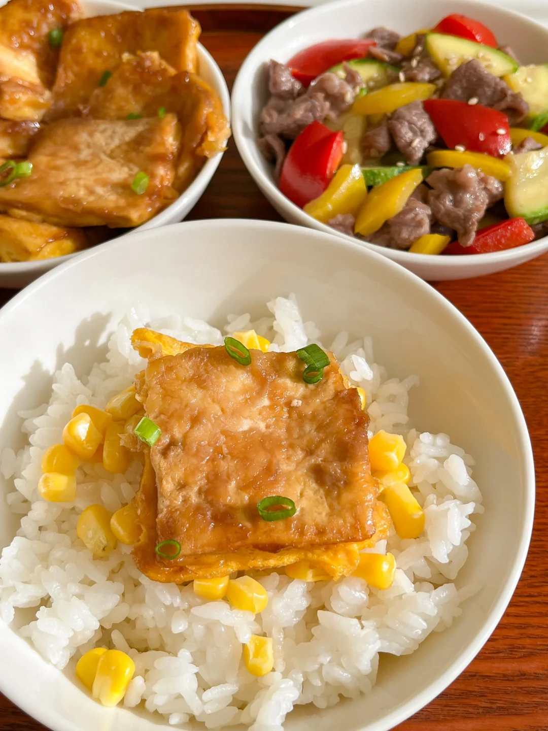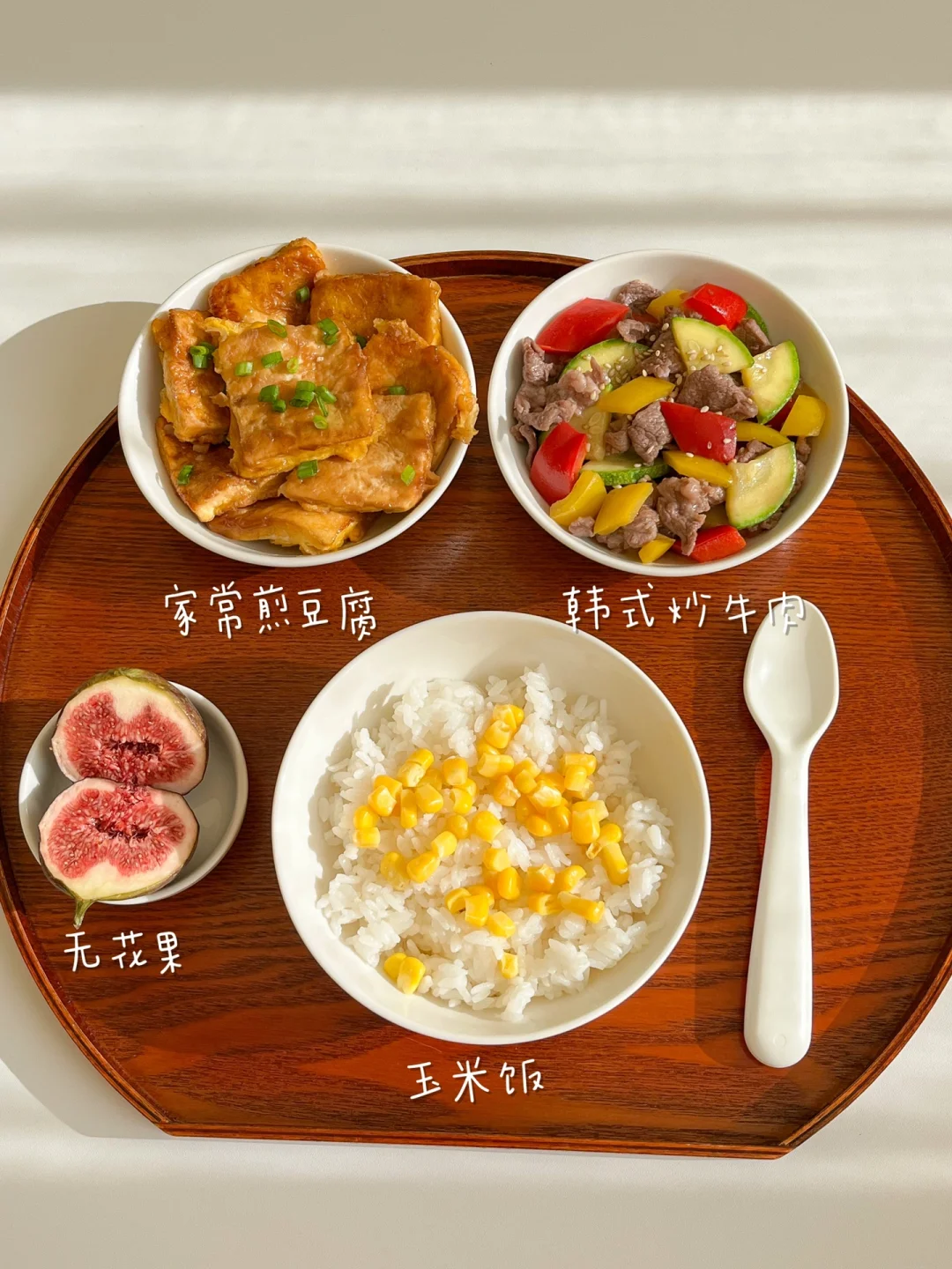 “最近天气都很好,做好午餐的时候刚好阳光洒在餐桌上,很舒服!烧豆腐好吃,小炒牛肉也好吃~”
