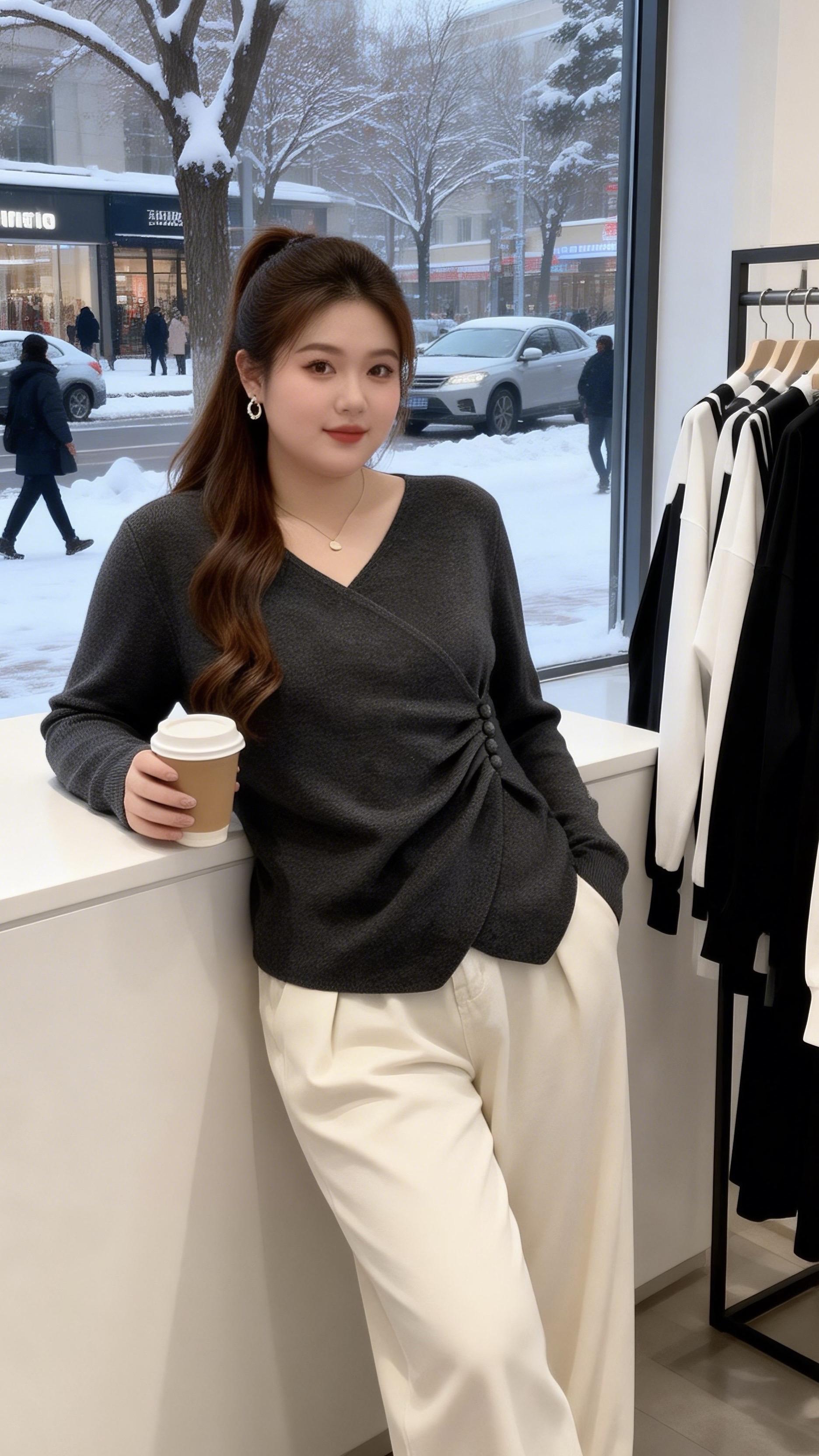 大码女装针织衫 遮肉显瘦 冬日穿搭一周不重样微胖女生冬日衣服测评