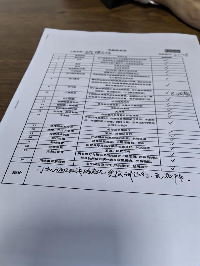 为了打消居民们的顾虑,去年11月14日,路劲物业特意要求电梯维保企业对故障率较高的18号楼的电梯单独进行了一次整体检修。检修结束后,维保企业出具了检修报告,记者看到,这份报告上所有的检测项目后方均打了勾,下方的结论写道:“门机通讯线路老化。更换(后)试运行,无故障。”但12月,18号楼的电梯依然发生了停运故障,维保企业上门维修时又更换了电梯的导靴。这让居民们质疑维保检修是否实在走过场。