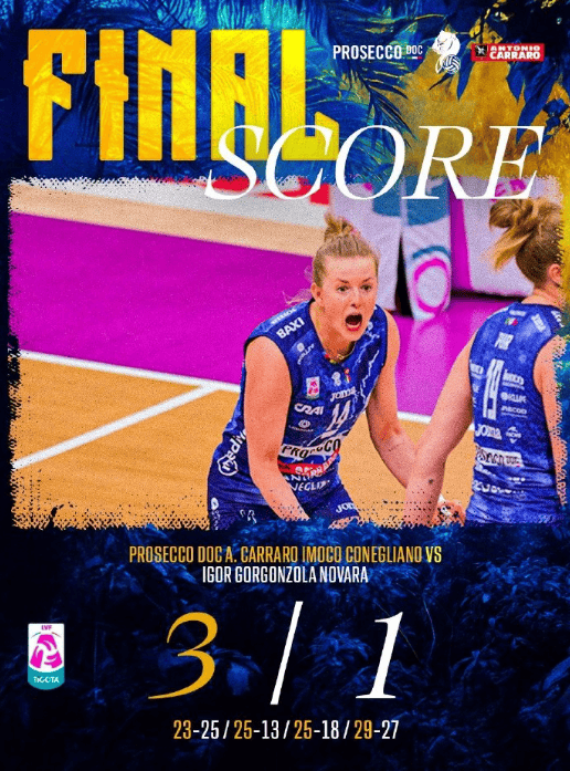 虎扑01月05日讯今天凌晨结束的意甲女排第18轮焦点战,科内利亚诺主场3-1击败诺瓦拉。