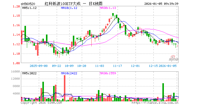 1月5日,红利低波100ETF大成(560520)开盘跌0.36%,报1.115元。红利低波100ETF大成(560520)重仓股方面,冀中能源开盘涨0.19%,养元饮品跌0.03%,厦门国贸涨0.14%,双汇发展涨0.11%,苏泊尔涨0.34%,雅戈尔跌0.39%,中国神华涨0.02%,大秦铁路涨0.19%,中国石化涨0.32%,江中药业涨0.00%。