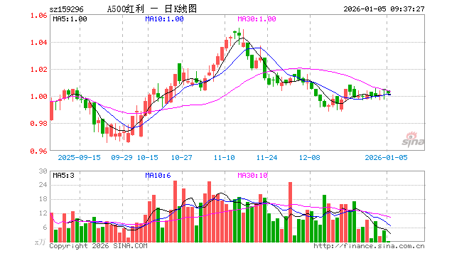 1月5日,A500红利低波ETF(159296)开盘涨0.00%,报1.004元。A500红利低波ETF(159296)重仓股方面,农业银行开盘跌0.39%,雅戈尔跌0.39%,中国神华涨0.02%,云天化涨0.57%,中国银行涨0.00%,交通银行涨0.14%,工商银行跌0.25%,江苏银行涨0.77%,邮储银行涨0.18%,格力电器涨0.30%。