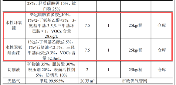 主要原辅材料消耗一览表