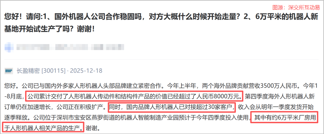 截止2025年12月18日,长盈精密对接的国内品牌人形机器人公司已超过30家;它还自信表示,已经成海外人形机器人品牌的Tier1,订单的接收和交付均直接对接终端品牌。