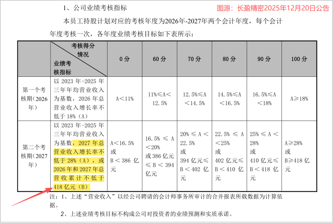 长盈精密规定,只有2027年的营收增长率达到28%,或者2026年和2027年总营收累计达到418亿元时,这双激励计划才能全部兑现。