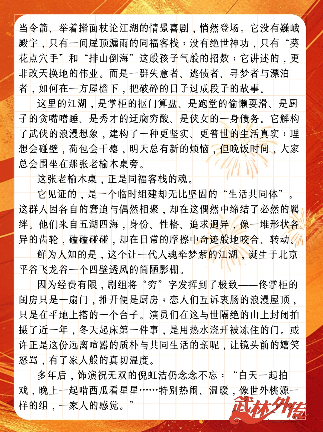 ✨热议背后,是《武林外传》不可复制的魅力—一它用小人物的烟火日常解构武侠,把责任、友情藏在笑料里,这种不说教的温暖,恰好填补了当下快节奏生活里的情感空缺。