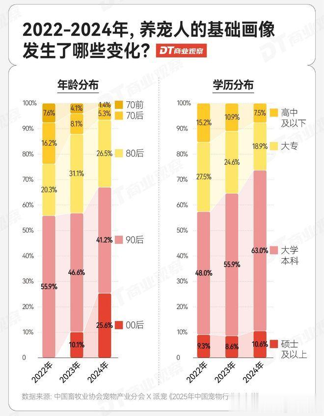 这些变化背后,是养宠人群构成的深刻变革,据统计,目前90后和00后已成为养宠主力,其中00后占比快速提升至四分之一。