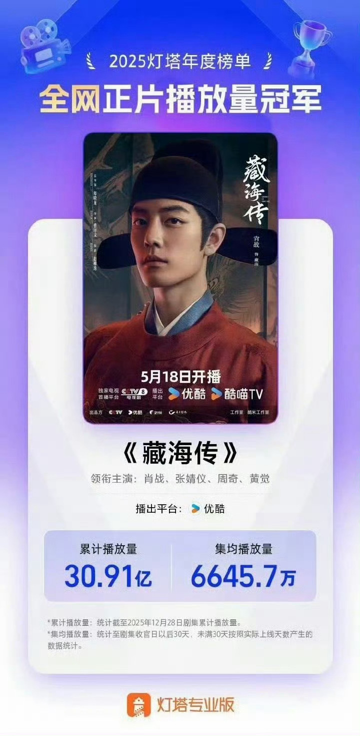 肖战藏海传三平台年冠肖战藏海传三平台播放量冠军 《藏海传》赢麻了!灯塔、猫眼、云